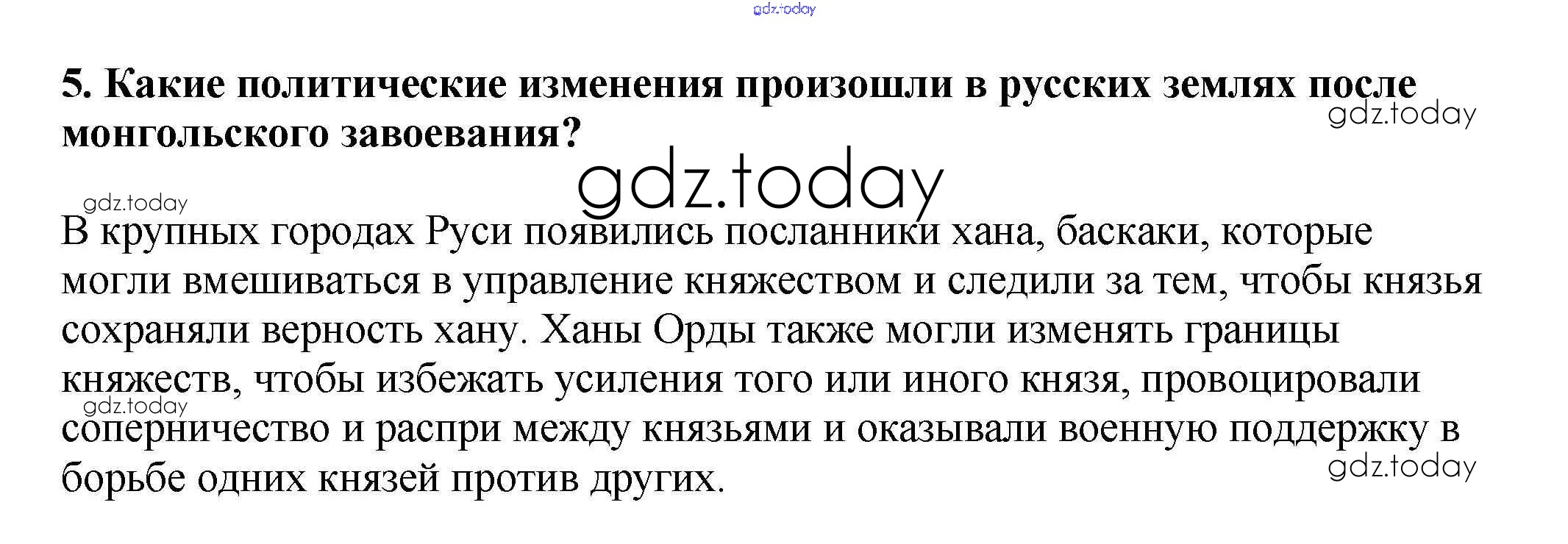 На страницах сайта gdz.today вы найдете учебный и вспомогательный материал, направленный на улучшения знаний школьной программы. ГДЗ - онлайн мир знаний Вопросы и задания для работы с текстом Решение к §18 5 Учебнику по Истории России для 6 класса Арсентьев, Данилов Просвещение 2016