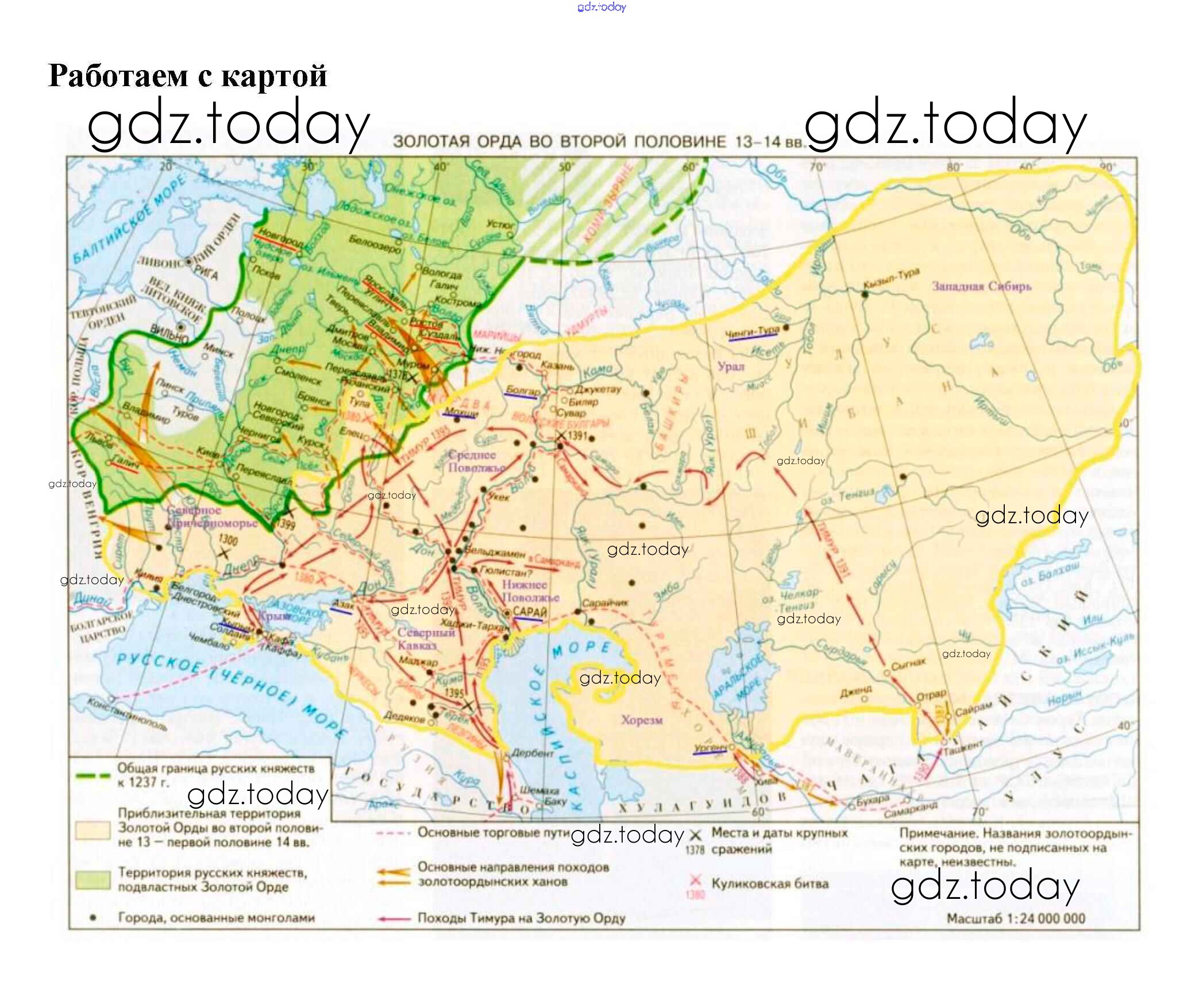 На страницах сайта gdz.today вы найдете учебный и вспомогательный материал, направленный на улучшения знаний школьной программы. ГДЗ - онлайн мир знаний Работаем с картой Решение к §18 1 Учебнику по Истории России для 6 класса Арсентьев, Данилов Просвещение 2016