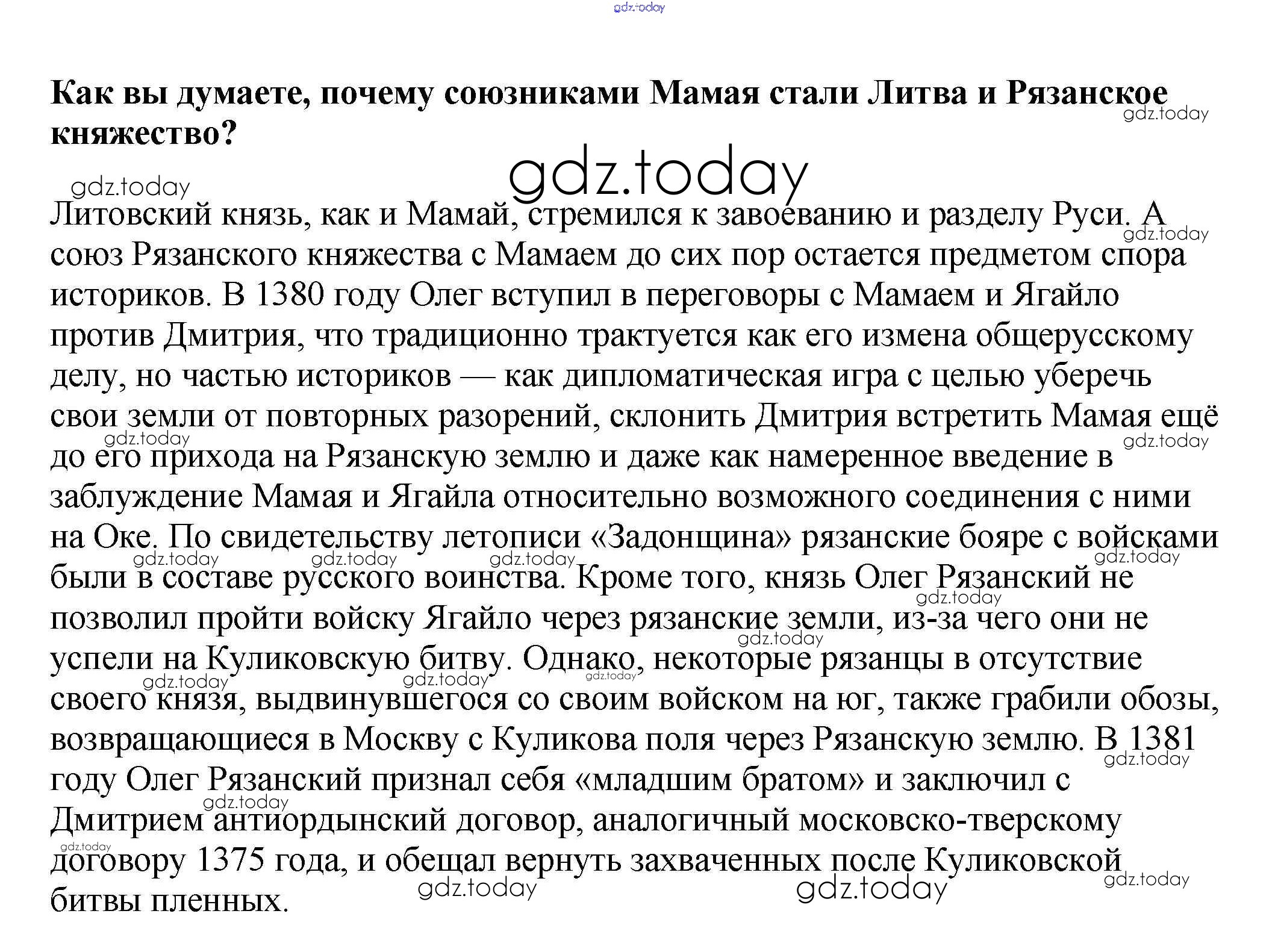 Ответы к Вопросы в тексте Решение к §21 4 Учебнику по Истории России для 6 класса Арсентьев, Данилов Просвещение 2016