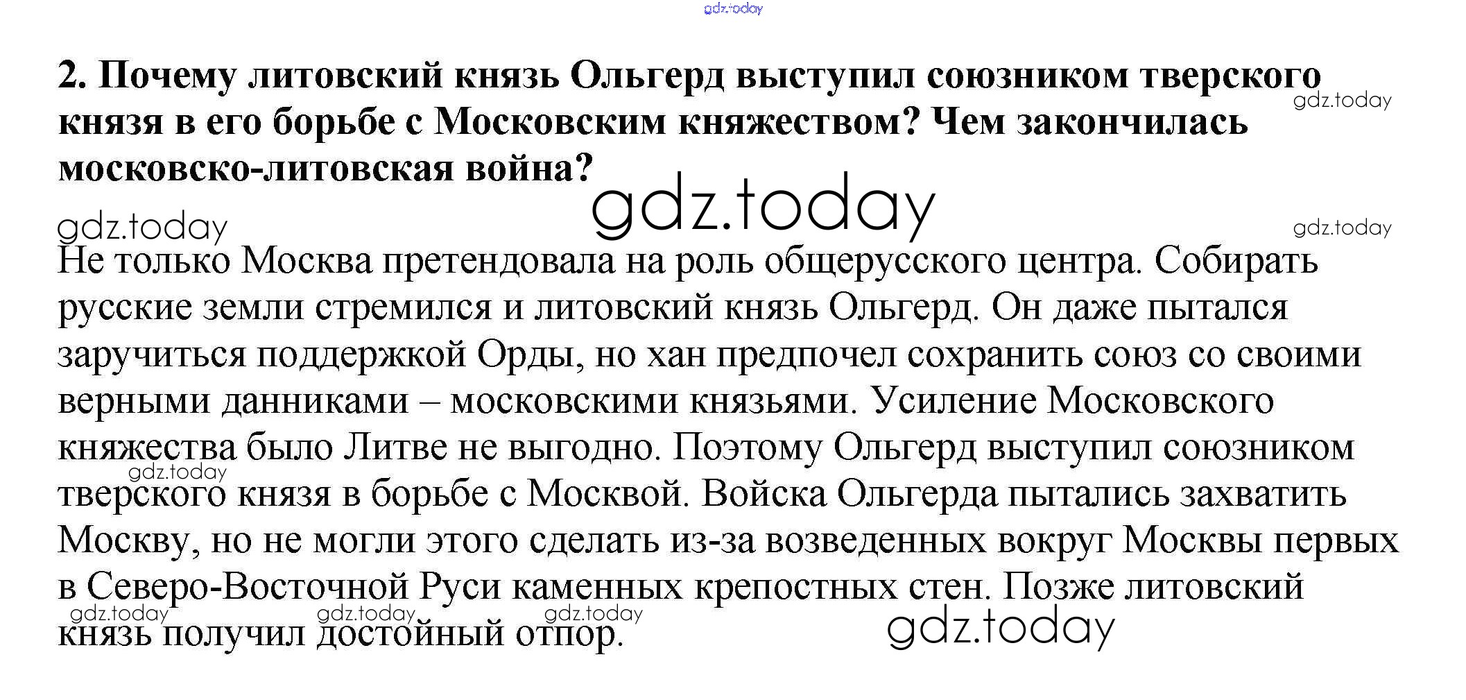 На страницах сайта gdz.today вы найдете учебный и вспомогательный материал, направленный на улучшения знаний школьной программы. ГДЗ - онлайн мир знаний Вопросы и задания для работы с текстом Решение к §21 2 Учебнику по Истории России для 6 класса Арсентьев, Данилов Просвещение 2016
