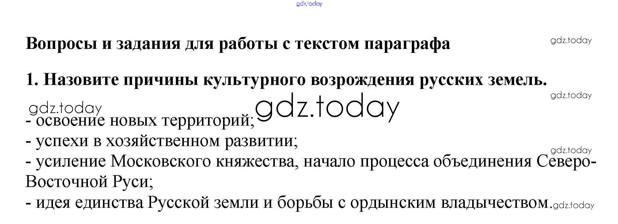 На страницах сайта gdz.today вы найдете учебный и вспомогательный материал, направленный на улучшения знаний школьной программы. ГДЗ - онлайн мир знаний Вопросы и задания для работы с текстом Решение к §22 1 Учебнику по Истории России для 6 класса Арсентьев, Данилов Просвещение 2016