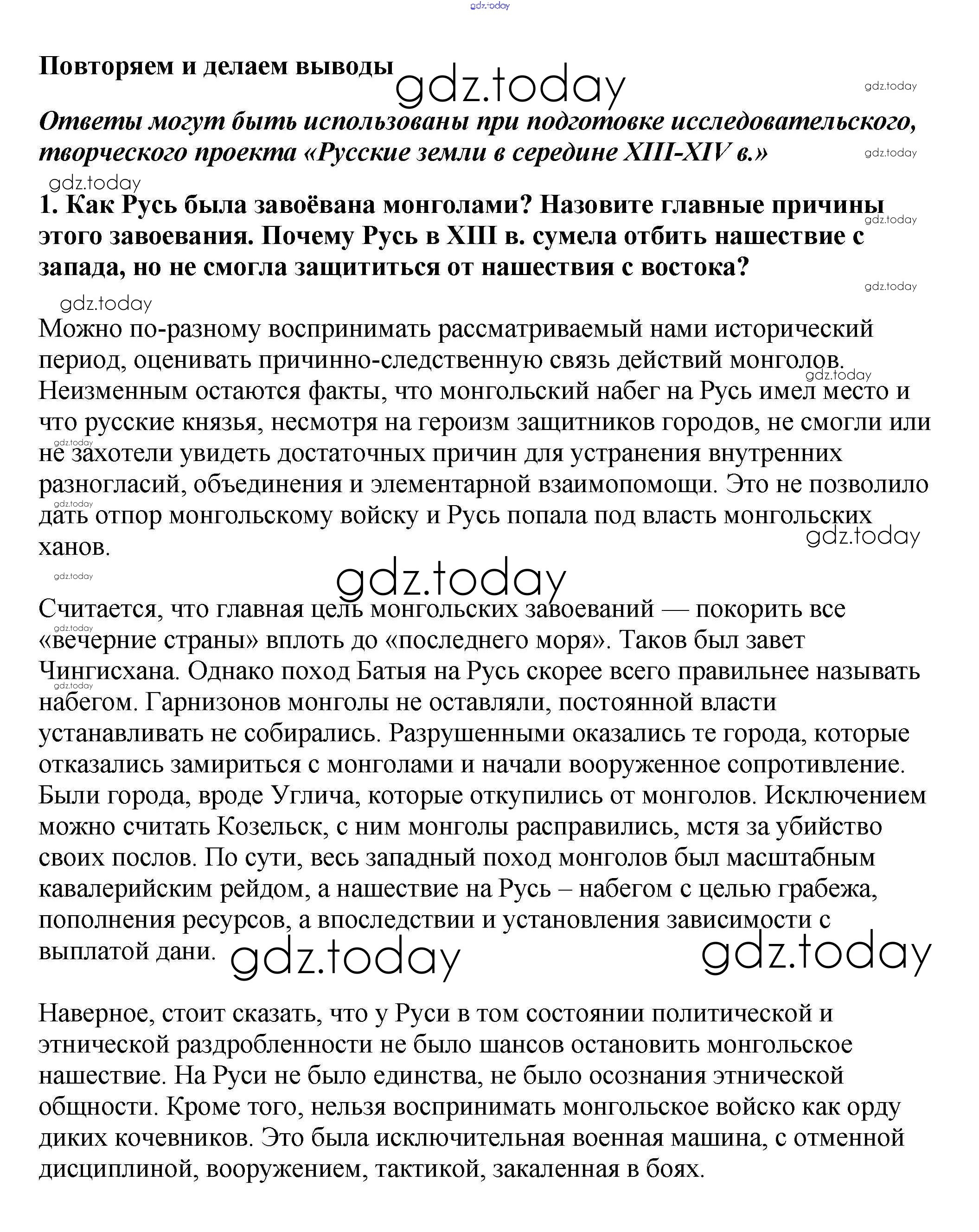 На страницах сайта gdz.today вы найдете учебный и вспомогательный материал, направленный на улучшения знаний школьной программы. ГДЗ - онлайн мир знаний Повторяем и делаем выводы Решение к §22 1 Учебнику по Истории России для 6 класса Арсентьев, Данилов Просвещение 2016