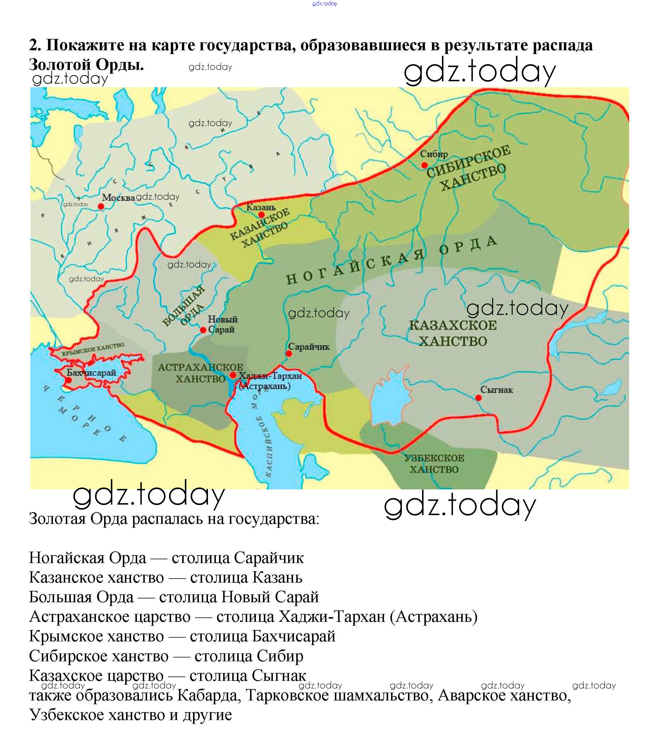 Ответы к Работаем с картой Решение к §25 2 Учебнику по Истории России для 6 класса Арсентьев, Данилов Просвещение 2016