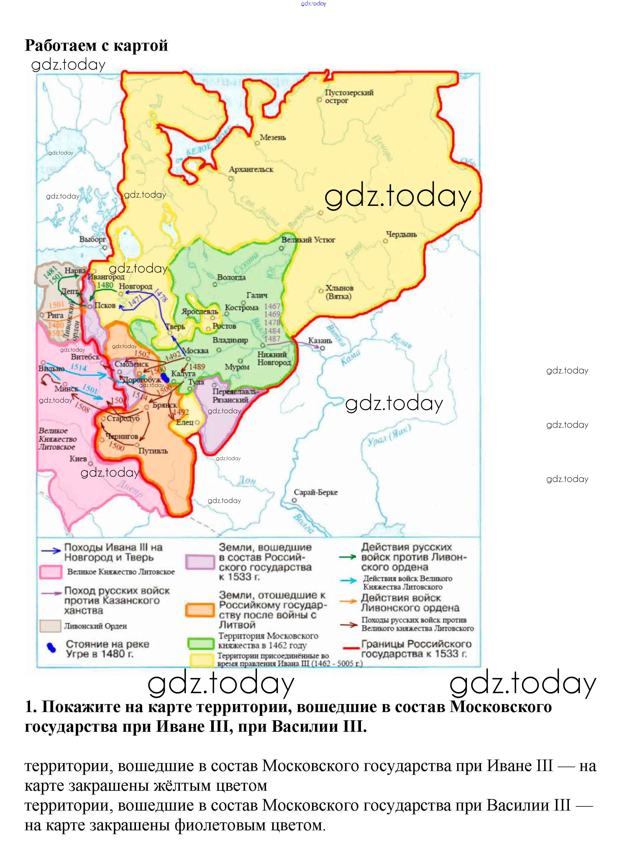 На страницах сайта gdz.today вы найдете учебный и вспомогательный материал, направленный на улучшения знаний школьной программы. ГДЗ - онлайн мир знаний Работаем с картой Решение к §26 1 Учебнику по Истории России для 6 класса Арсентьев, Данилов Просвещение 2016