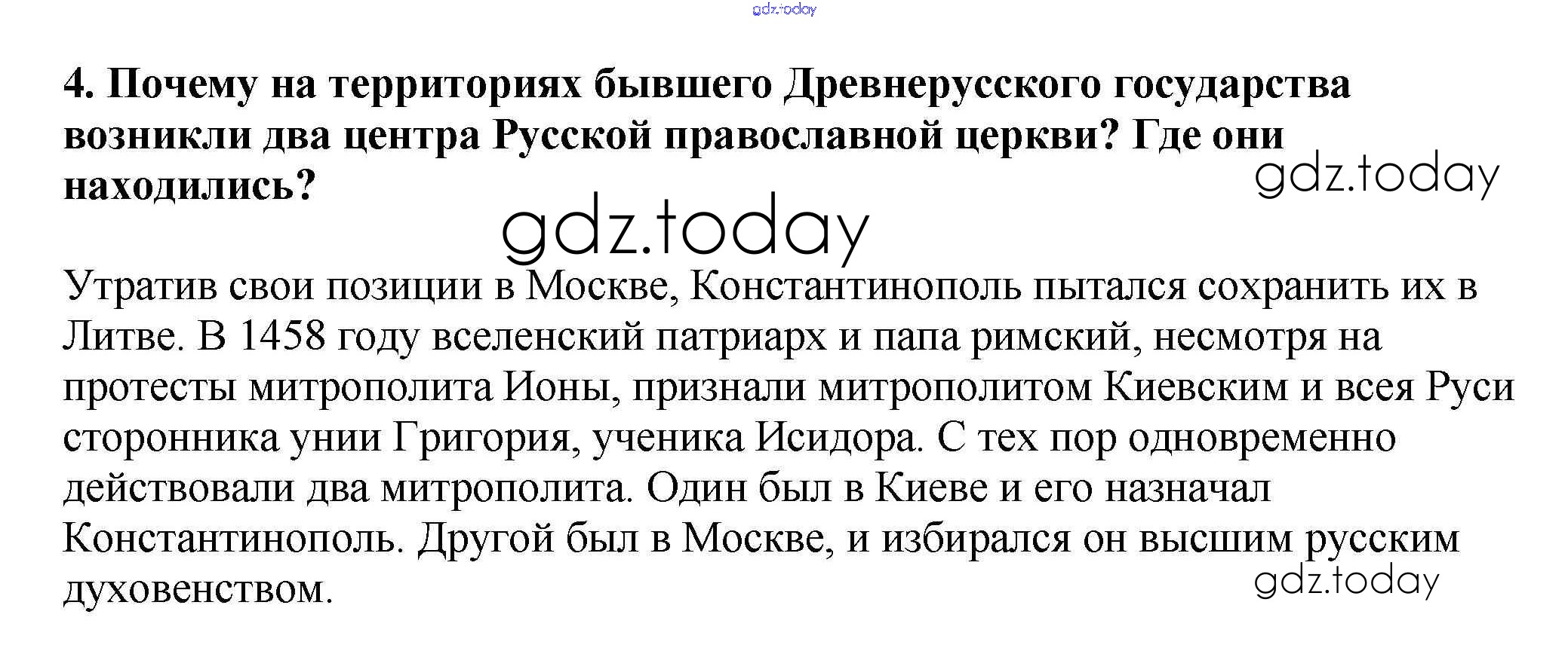 На страницах сайта gdz.today вы найдете учебный и вспомогательный материал, направленный на улучшения знаний школьной программы. ГДЗ - онлайн мир знаний Вопросы и задания для работы с текстом Русская православная церковь в XV — начале XVI в. 4 Учебнику по Истории России для 6 класса Арсентьев, Данилов Просвещение 2016