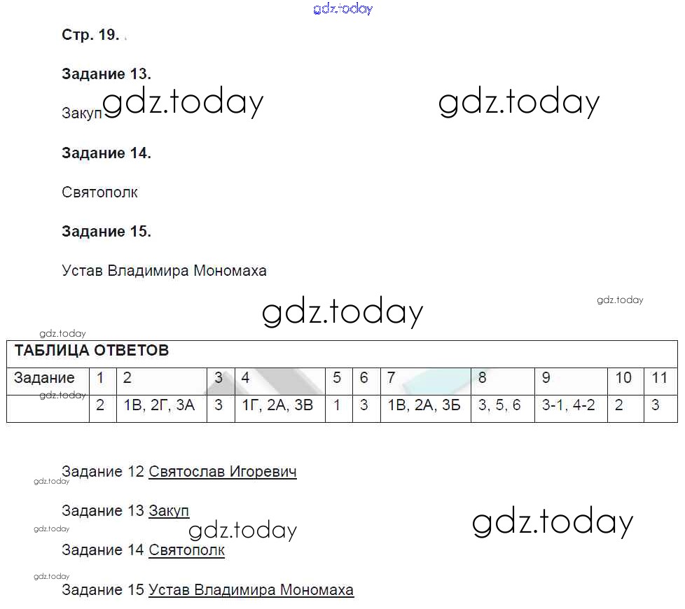 Ответы к Страницы (решение) 19 Контрольным работам по Истории России для 6 класса Артасов Просвещение УМК 2016