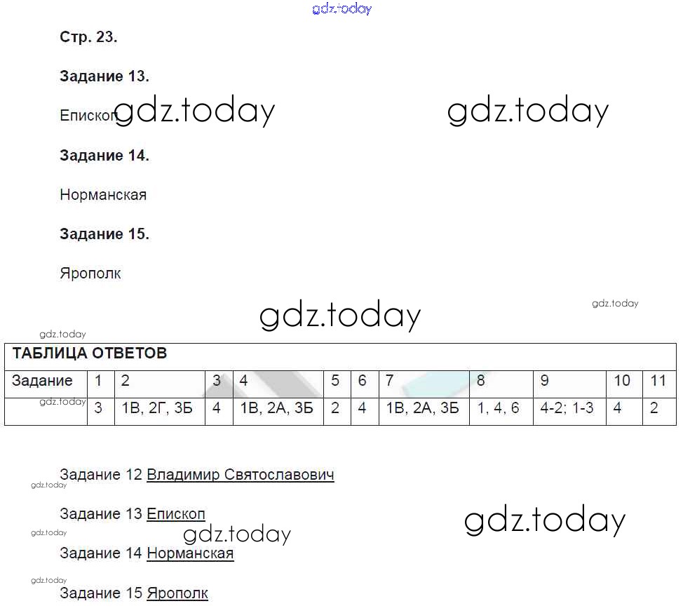 На страницах сайта gdz.today вы найдете учебный и вспомогательный материал, направленный на улучшения знаний школьной программы. ГДЗ - онлайн мир знаний Страницы (решение) 23 Контрольным работам по Истории России для 6 класса Артасов Просвещение УМК 2016