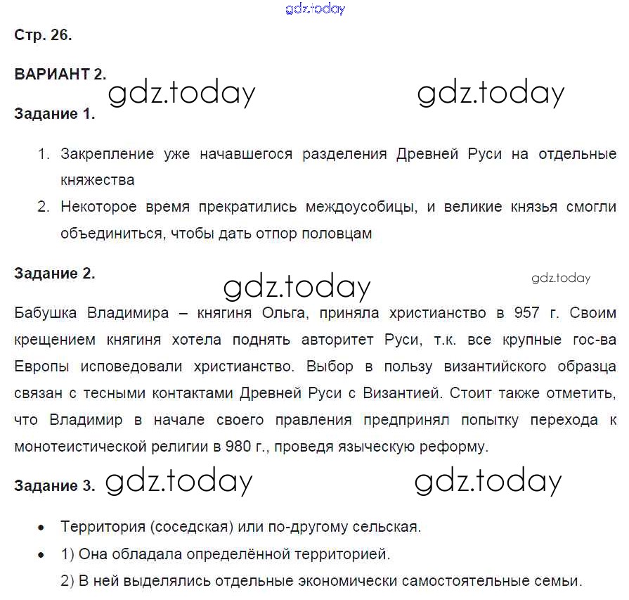 Ответы к Страницы (решение) 26 Контрольным работам по Истории России для 6 класса Артасов Просвещение УМК 2016