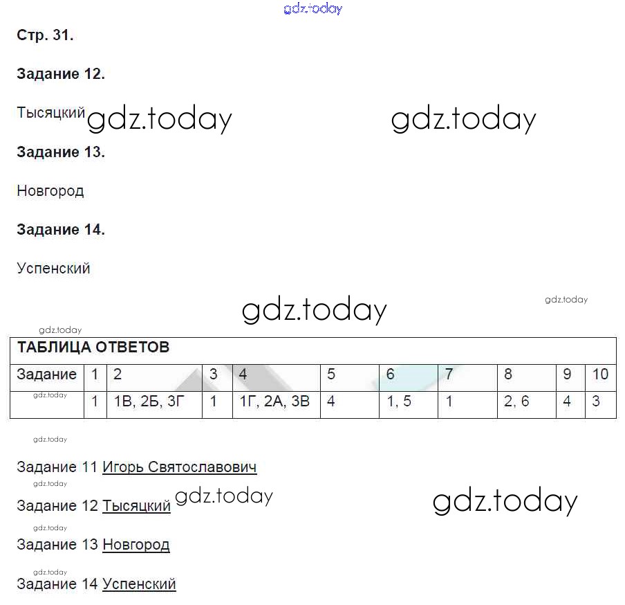 Ответы к Страницы (решение) 31 Контрольным работам по Истории России для 6 класса Артасов Просвещение УМК 2016