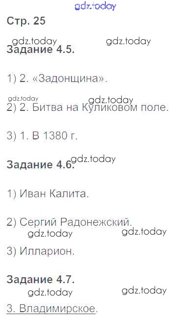 На страницах сайта gdz.today вы найдете учебный и вспомогательный материал, направленный на улучшения знаний школьной программы. ГДЗ - онлайн мир знаний Страницы (решение) 25 Рабочей тетради с контурными картами по Истории России для 6 класса Симонова Экзамен УМК 2018