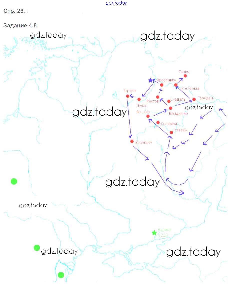 На страницах сайта gdz.today вы найдете учебный и вспомогательный материал, направленный на улучшения знаний школьной программы. ГДЗ - онлайн мир знаний Страницы (решение) 26 Рабочей тетради с контурными картами по Истории России для 6 класса Симонова Экзамен УМК 2018