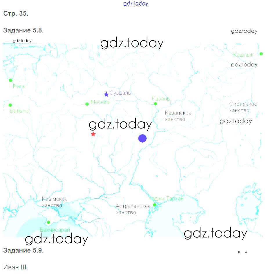 На страницах сайта gdz.today вы найдете учебный и вспомогательный материал, направленный на улучшения знаний школьной программы. ГДЗ - онлайн мир знаний Страницы (решение) 35 Рабочей тетради с контурными картами по Истории России для 6 класса Симонова Экзамен УМК 2018