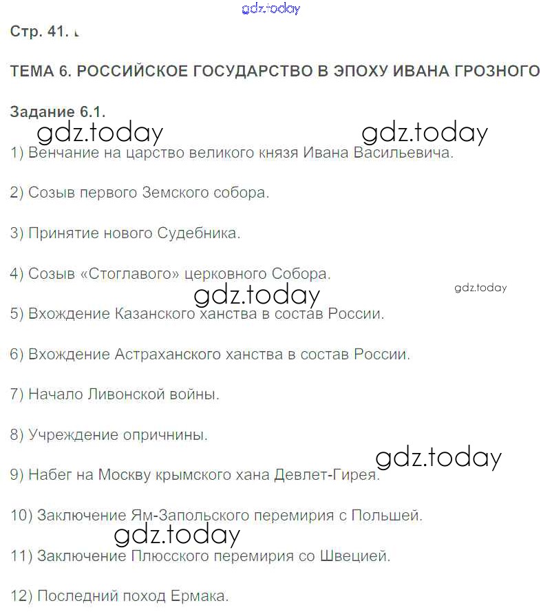 На страницах сайта gdz.today вы найдете учебный и вспомогательный материал, направленный на улучшения знаний школьной программы. ГДЗ - онлайн мир знаний Страницы (решение) 41 Рабочей тетради с контурными картами по Истории России для 6 класса Симонова Экзамен УМК 2018