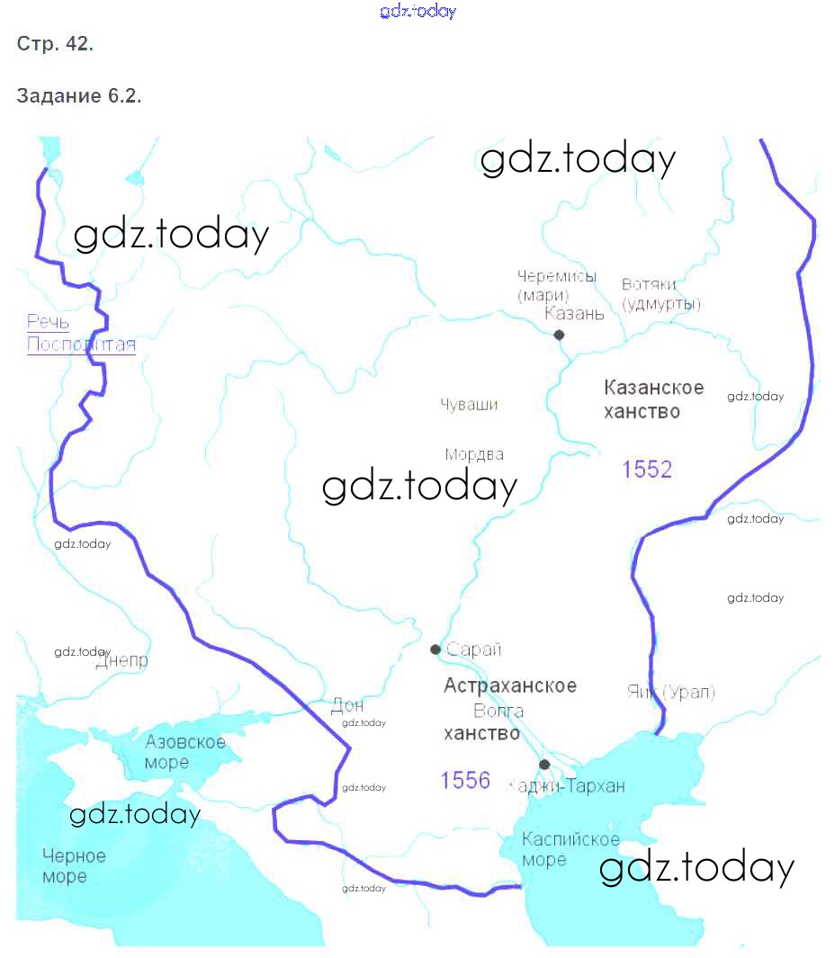 На страницах сайта gdz.today вы найдете учебный и вспомогательный материал, направленный на улучшения знаний школьной программы. ГДЗ - онлайн мир знаний Страницы (решение) 42 Рабочей тетради с контурными картами по Истории России для 6 класса Симонова Экзамен УМК 2018