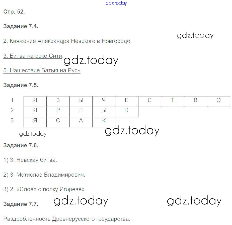 На страницах сайта gdz.today вы найдете учебный и вспомогательный материал, направленный на улучшения знаний школьной программы. ГДЗ - онлайн мир знаний Страницы (решение) 52 Рабочей тетради с контурными картами по Истории России для 6 класса Симонова Экзамен УМК 2018