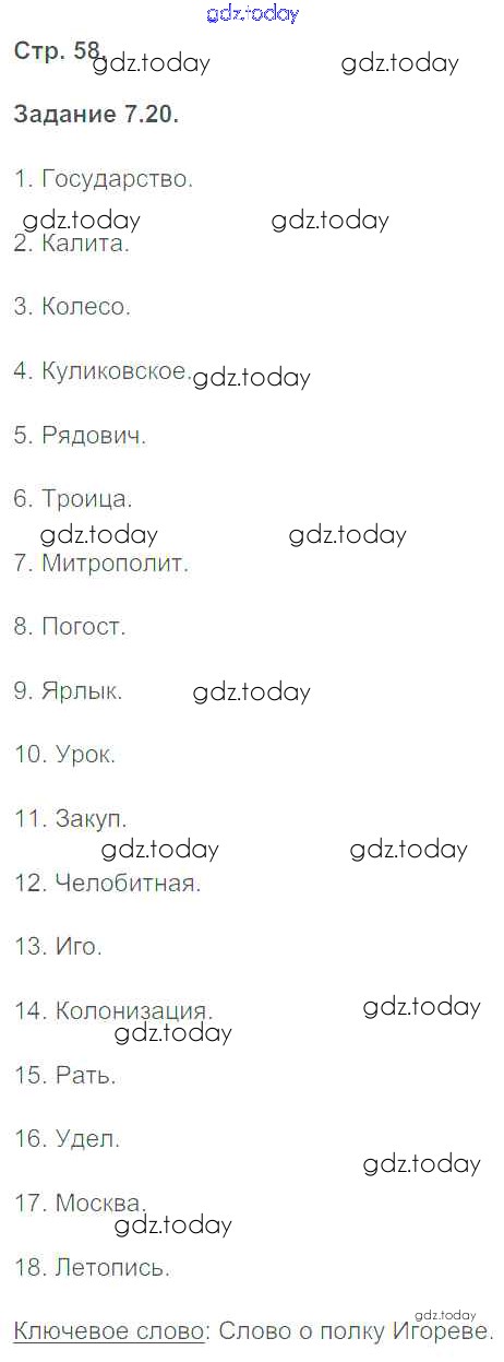 На страницах сайта gdz.today вы найдете учебный и вспомогательный материал, направленный на улучшения знаний школьной программы. ГДЗ - онлайн мир знаний Страницы (решение) 58 Рабочей тетради с контурными картами по Истории России для 6 класса Симонова Экзамен УМК 2018