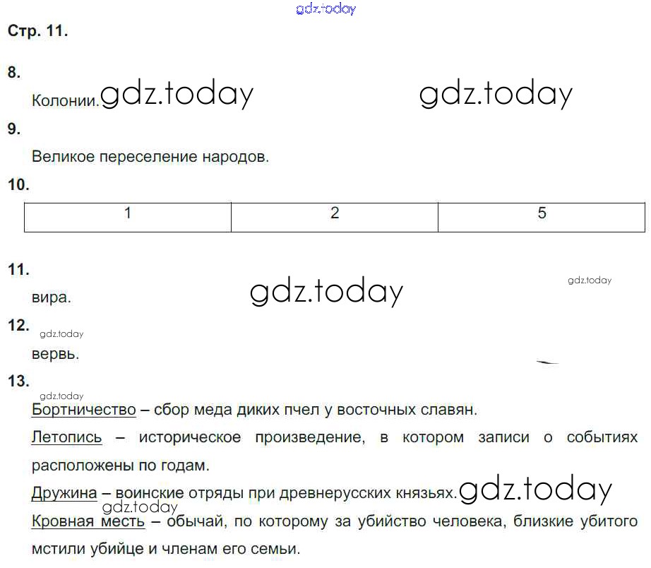 На страницах сайта gdz.today вы найдете учебный и вспомогательный материал, направленный на улучшения знаний школьной программы. ГДЗ - онлайн мир знаний Страницы (решение) 11 Рабочей тетради по Истории России для 6 класса Гевуркова Экзамен УМК 2018
