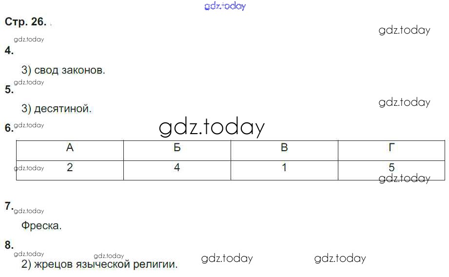 На страницах сайта gdz.today вы найдете учебный и вспомогательный материал, направленный на улучшения знаний школьной программы. ГДЗ - онлайн мир знаний Страницы (решение) 26 Рабочей тетради по Истории России для 6 класса Гевуркова Экзамен УМК 2018