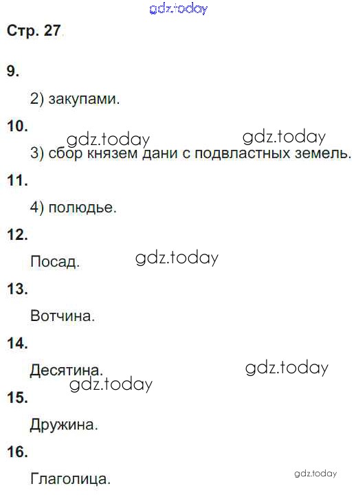 На страницах сайта gdz.today вы найдете учебный и вспомогательный материал, направленный на улучшения знаний школьной программы. ГДЗ - онлайн мир знаний Страницы (решение) 27 Рабочей тетради по Истории России для 6 класса Гевуркова Экзамен УМК 2018