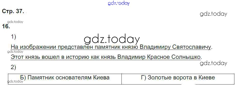 На страницах сайта gdz.today вы найдете учебный и вспомогательный материал, направленный на улучшения знаний школьной программы. ГДЗ - онлайн мир знаний Страницы (решение) 37 Рабочей тетради по Истории России для 6 класса Гевуркова Экзамен УМК 2018