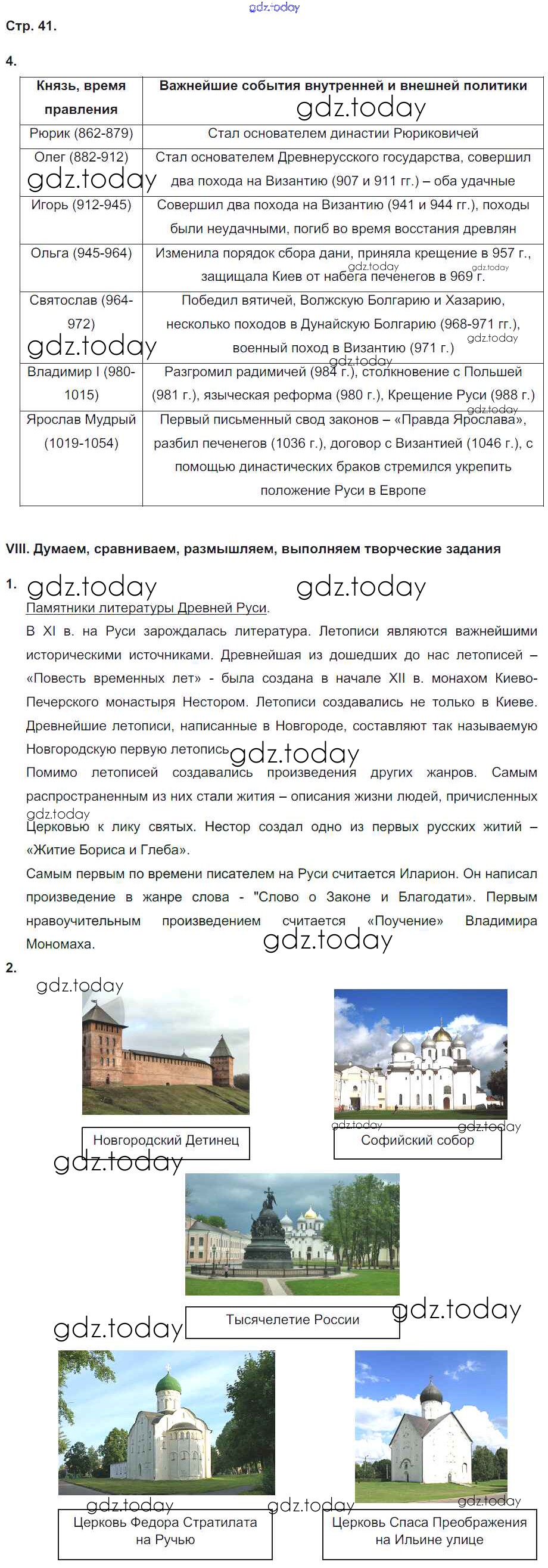 На страницах сайта gdz.today вы найдете учебный и вспомогательный материал, направленный на улучшения знаний школьной программы. ГДЗ - онлайн мир знаний Страницы (решение) 41 Рабочей тетради по Истории России для 6 класса Гевуркова Экзамен УМК 2018