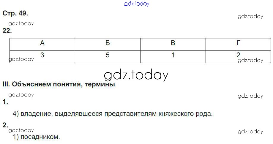 Ответы к Страницы (решение) 49 Рабочей тетради по Истории России для 6 класса Гевуркова Экзамен УМК 2018