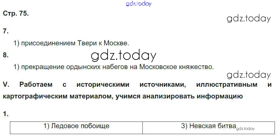 Ответы к Страницы (решение) 75 Рабочей тетради по Истории России для 6 класса Гевуркова Экзамен УМК 2018
