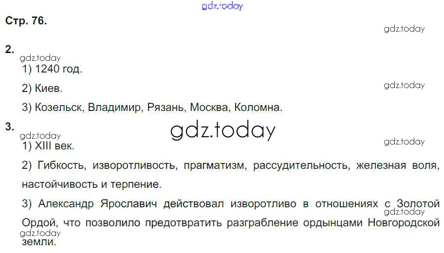 На страницах сайта gdz.today вы найдете учебный и вспомогательный материал, направленный на улучшения знаний школьной программы. ГДЗ - онлайн мир знаний Страницы (решение) 76 Рабочей тетради по Истории России для 6 класса Гевуркова Экзамен УМК 2018