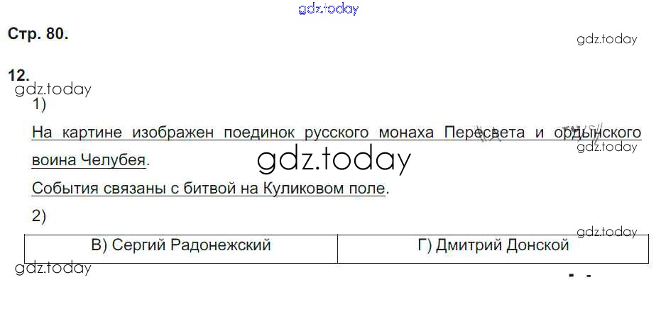 На страницах сайта gdz.today вы найдете учебный и вспомогательный материал, направленный на улучшения знаний школьной программы. ГДЗ - онлайн мир знаний Страницы (решение) 80 Рабочей тетради по Истории России для 6 класса Гевуркова Экзамен УМК 2018