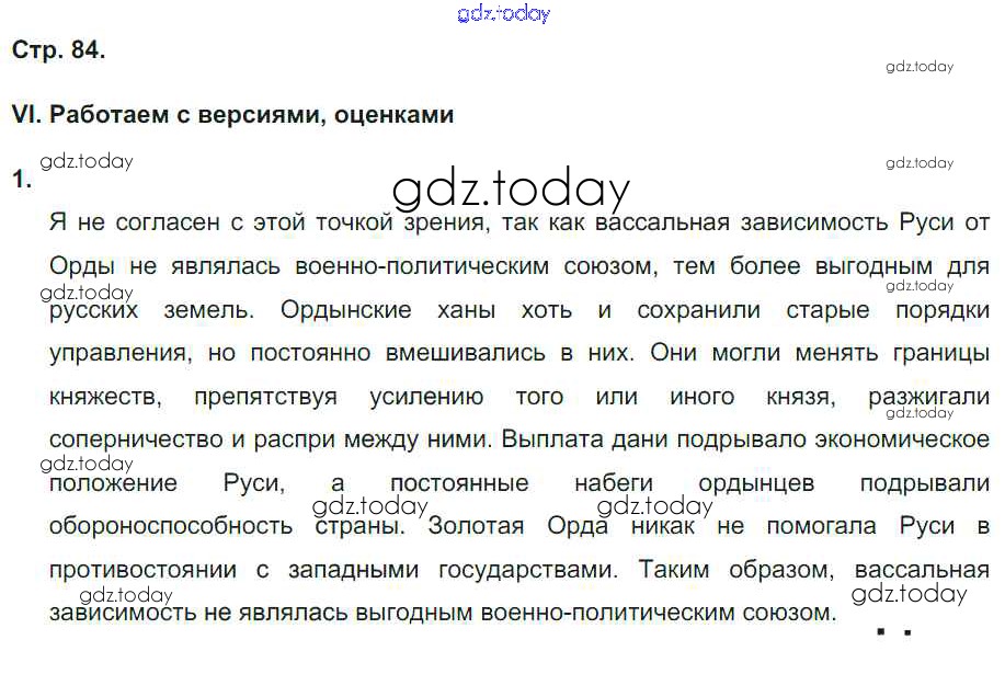 На страницах сайта gdz.today вы найдете учебный и вспомогательный материал, направленный на улучшения знаний школьной программы. ГДЗ - онлайн мир знаний Страницы (решение) 84 Рабочей тетради по Истории России для 6 класса Гевуркова Экзамен УМК 2018
