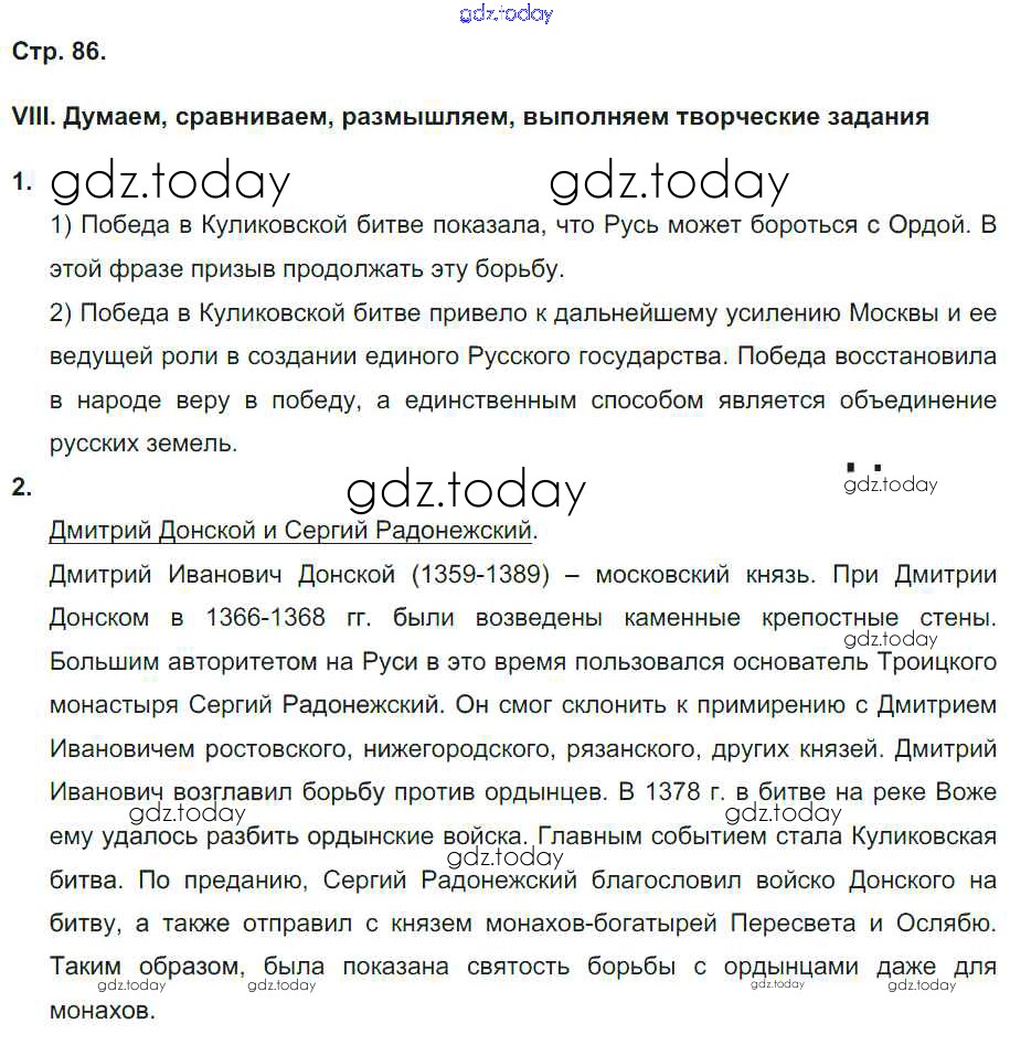 На страницах сайта gdz.today вы найдете учебный и вспомогательный материал, направленный на улучшения знаний школьной программы. ГДЗ - онлайн мир знаний Страницы (решение) 86 Рабочей тетради по Истории России для 6 класса Гевуркова Экзамен УМК 2018