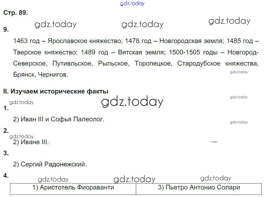 Ответы к Страницы (решение) 89 Рабочей тетради по Истории России для 6 класса Гевуркова Экзамен УМК 2018