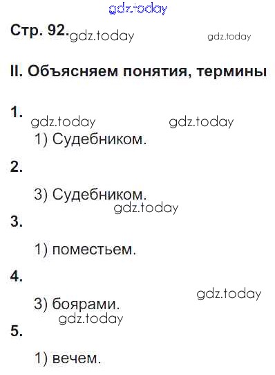 Ответы к Страницы (решение) 92 Рабочей тетради по Истории России для 6 класса Гевуркова Экзамен УМК 2018