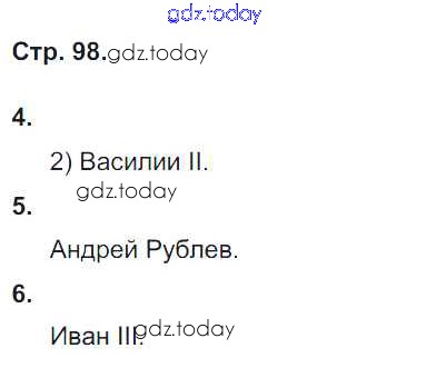 Ответы к Страницы (решение) 98 Рабочей тетради по Истории России для 6 класса Гевуркова Экзамен УМК 2018