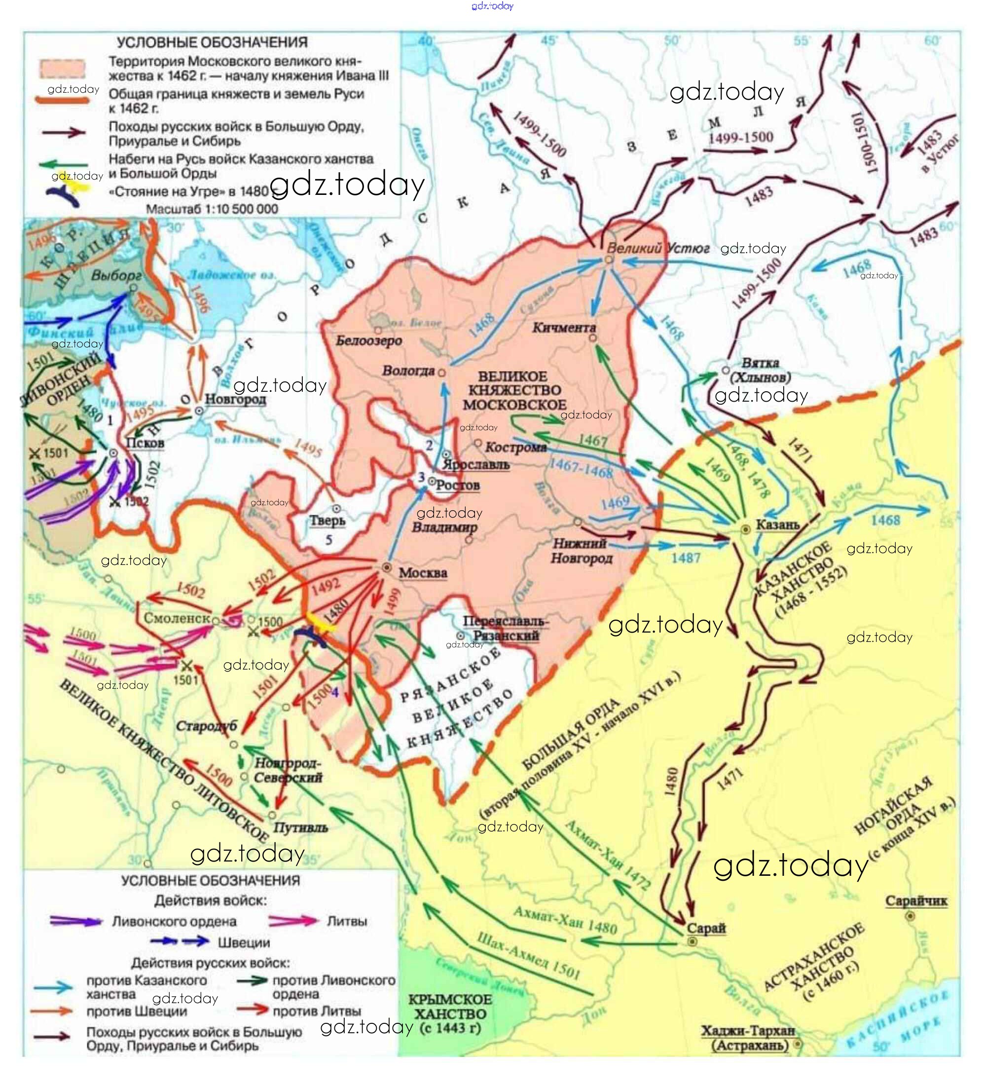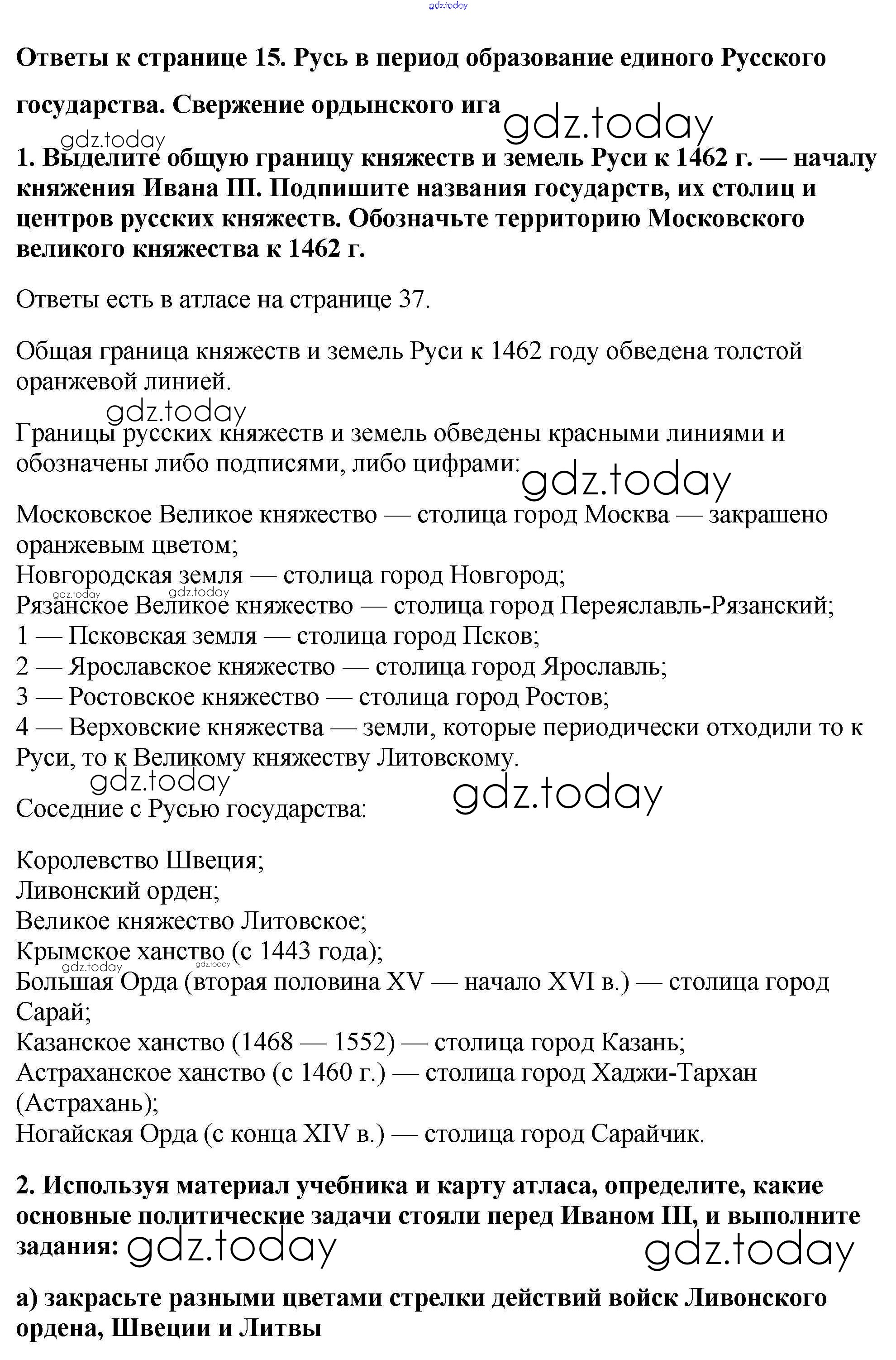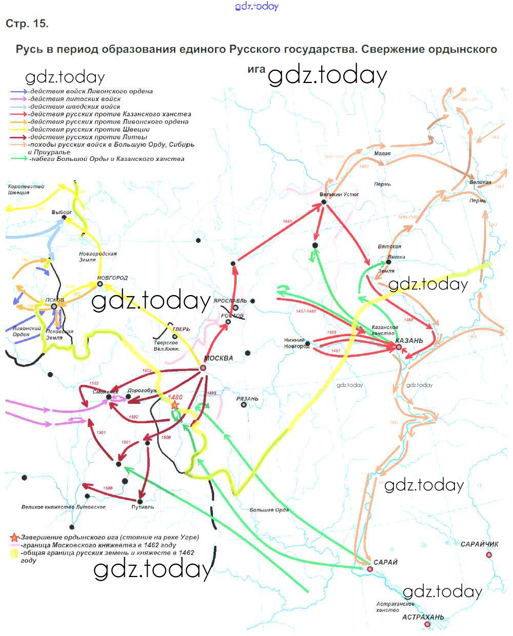На страницах сайта gdz.today вы найдете учебный и вспомогательный материал, направленный на улучшения знаний школьной программы. ГДЗ - онлайн мир знаний Страницы (решение) Страница 15. Русь в период образование единого Российского государства. Свержение ордынского ига Контурным картам по Истории России для 6 класса Тороп Дрофа УМК 2019