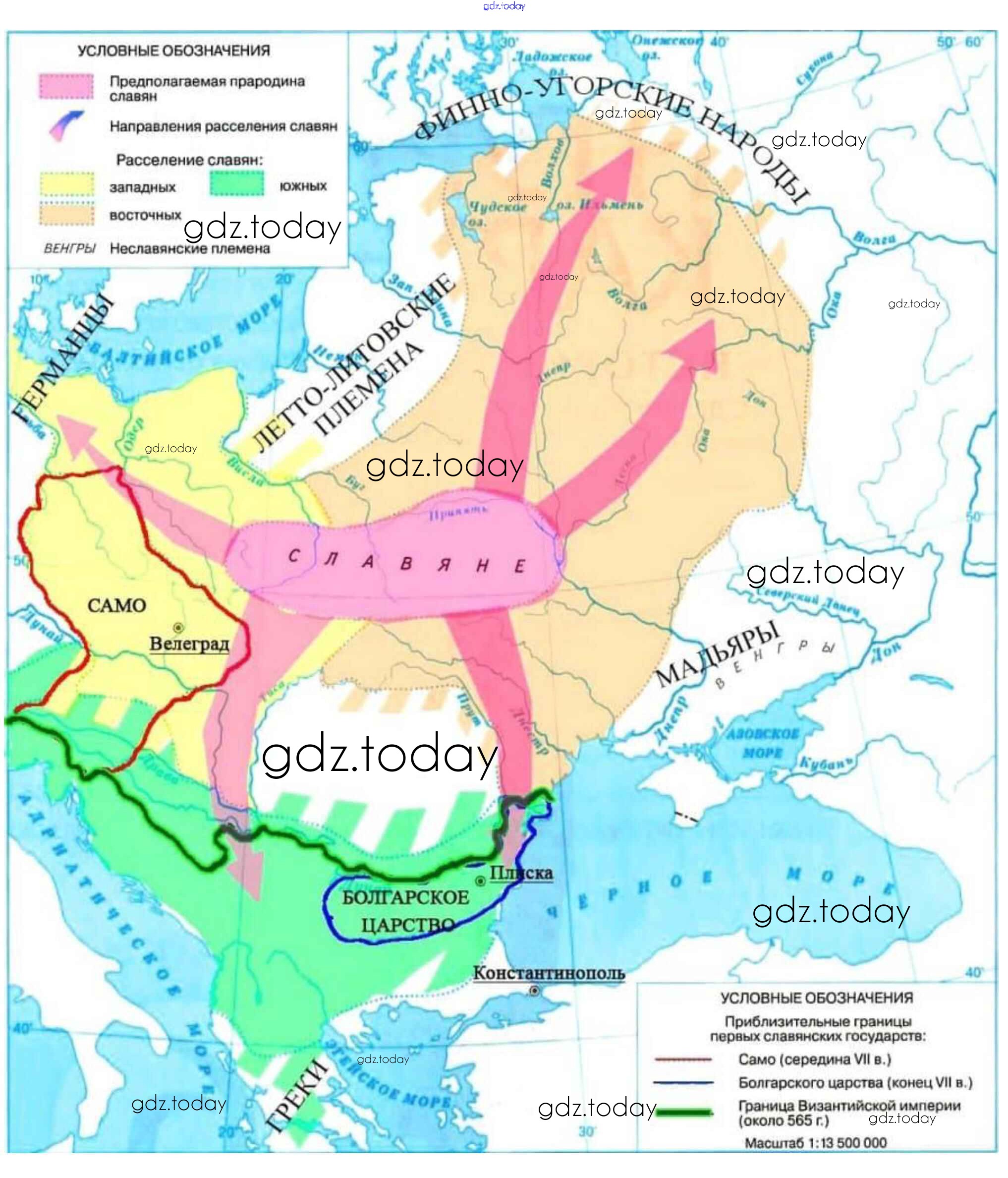 На страницах сайта gdz.today вы найдете учебный и вспомогательный материал, направленный на улучшения знаний школьной программы. ГДЗ - онлайн мир знаний Страницы (решение) Страница 2. Расселение славян в 1-9 вв. Контурным картам по Истории России для 6 класса Тороп Дрофа УМК 2019