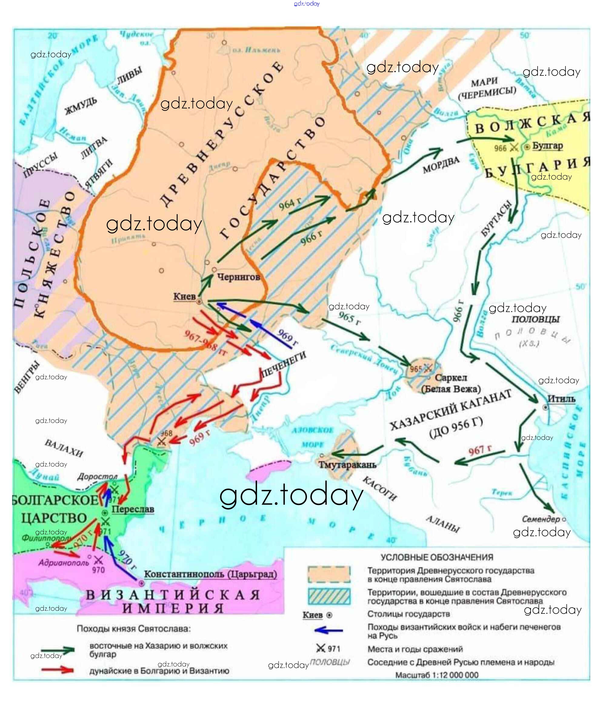 Ответы к Страницы (решение) Страница 5. Походы князя Святослава. 964-972 гг. Контурным картам по Истории России для 6 класса Тороп Дрофа УМК 2019