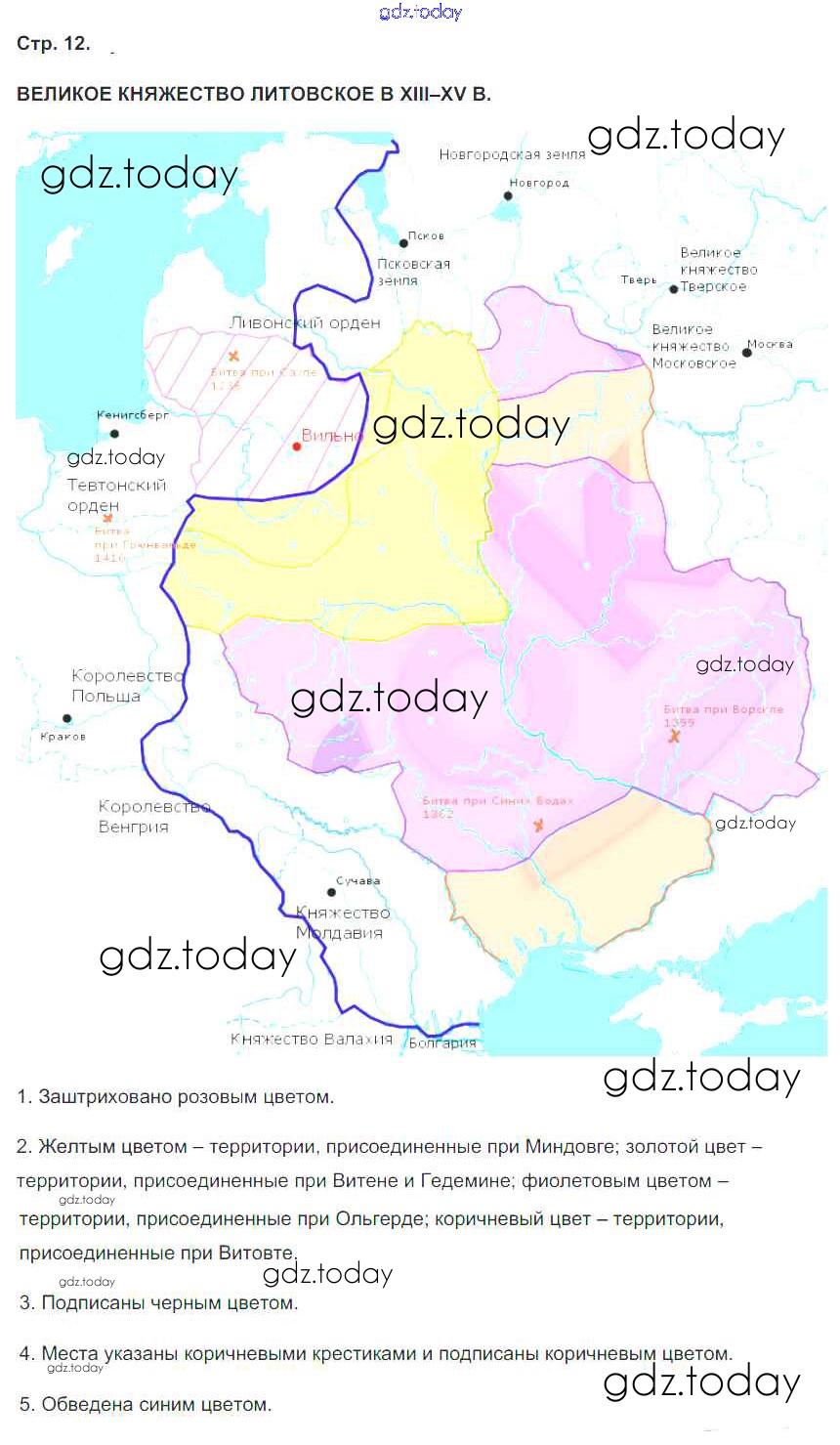 На страницах сайта gdz.today вы найдете учебный и вспомогательный материал, направленный на улучшения знаний школьной программы. ГДЗ - онлайн мир знаний Страницы (решение) 12 Контурным картам по Истории России для 6 класса Пчелов Русское слово 2017