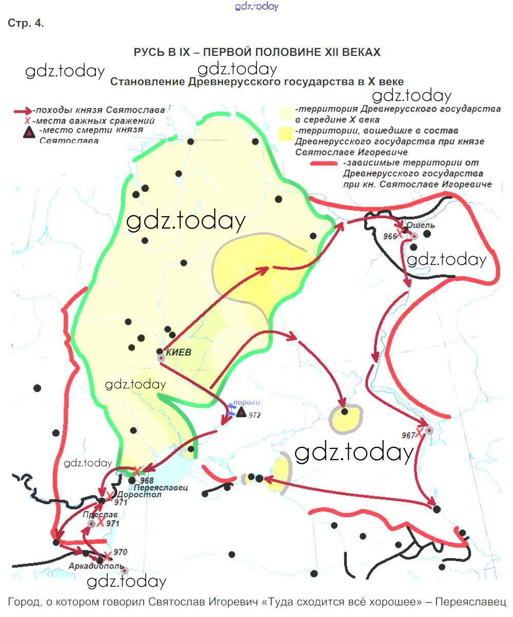 На страницах сайта gdz.today вы найдете учебный и вспомогательный материал, направленный на улучшения знаний школьной программы. ГДЗ - онлайн мир знаний Решение к теме Русь в IX - первой XII века страница 4 Контурным картам по Истории России для 6 класса Тороп Просвещение УМК 2015