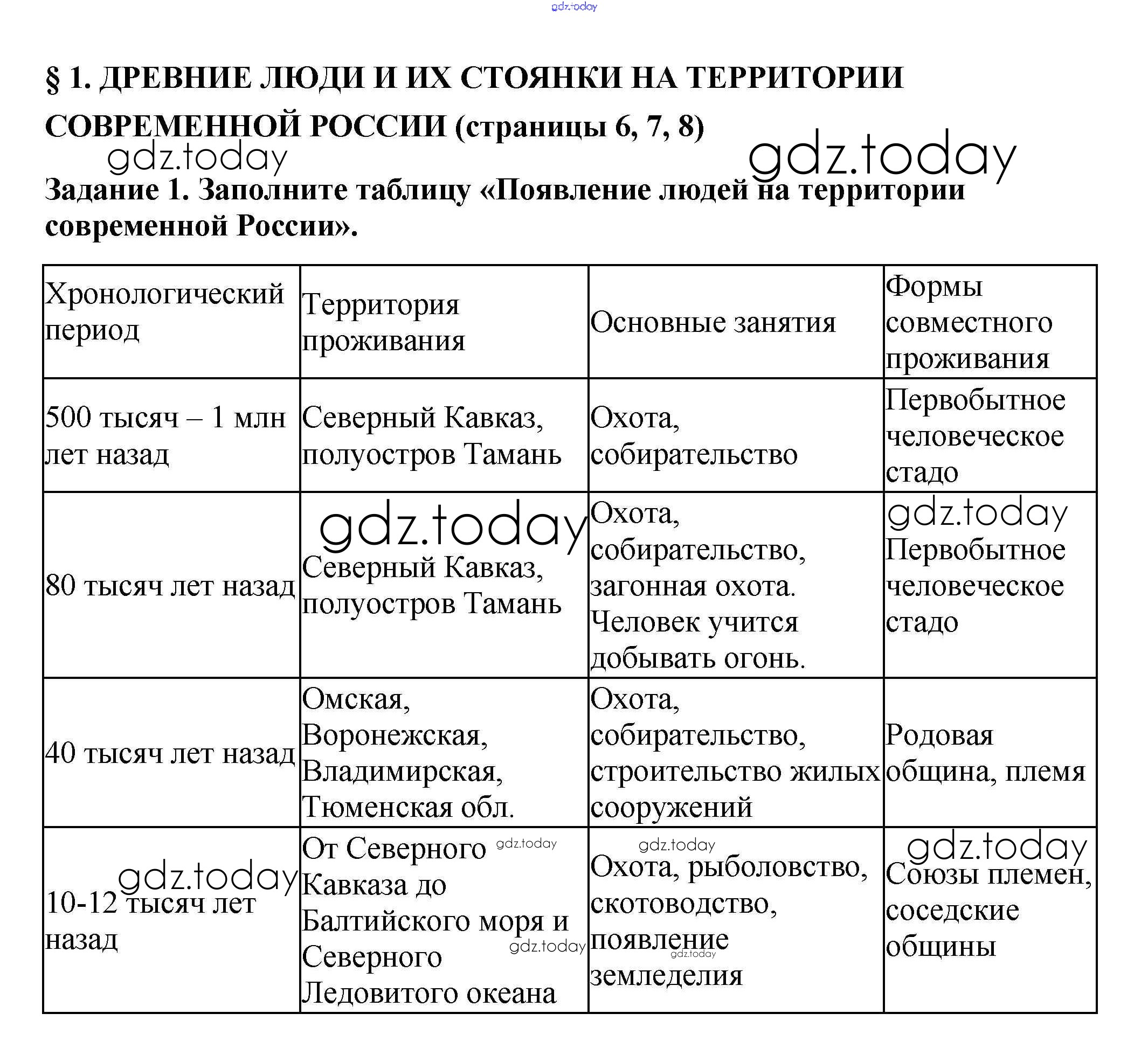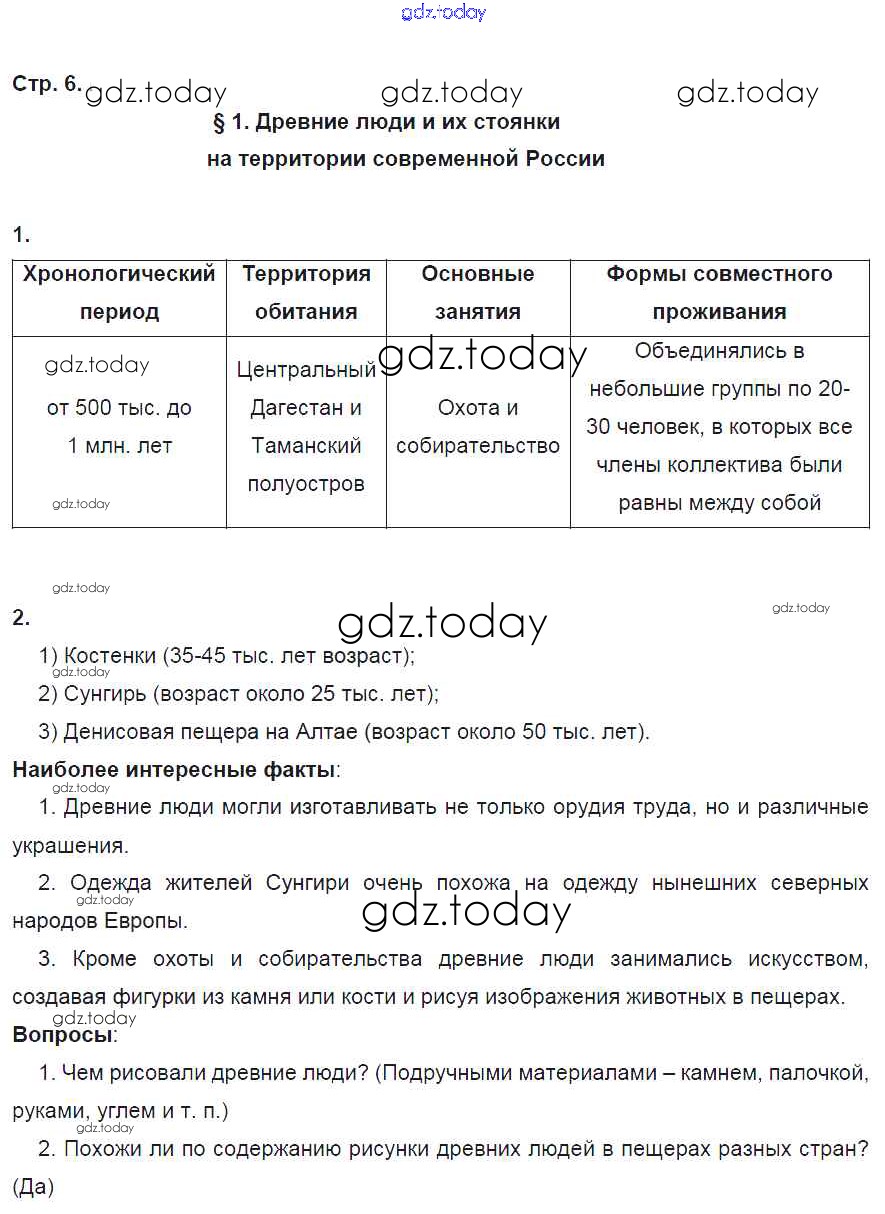 Ответы к Решение к §1 стр. 6 Рабочей тетради по Истории России для 6 класса Артасов, Данилов Просвещение 2016