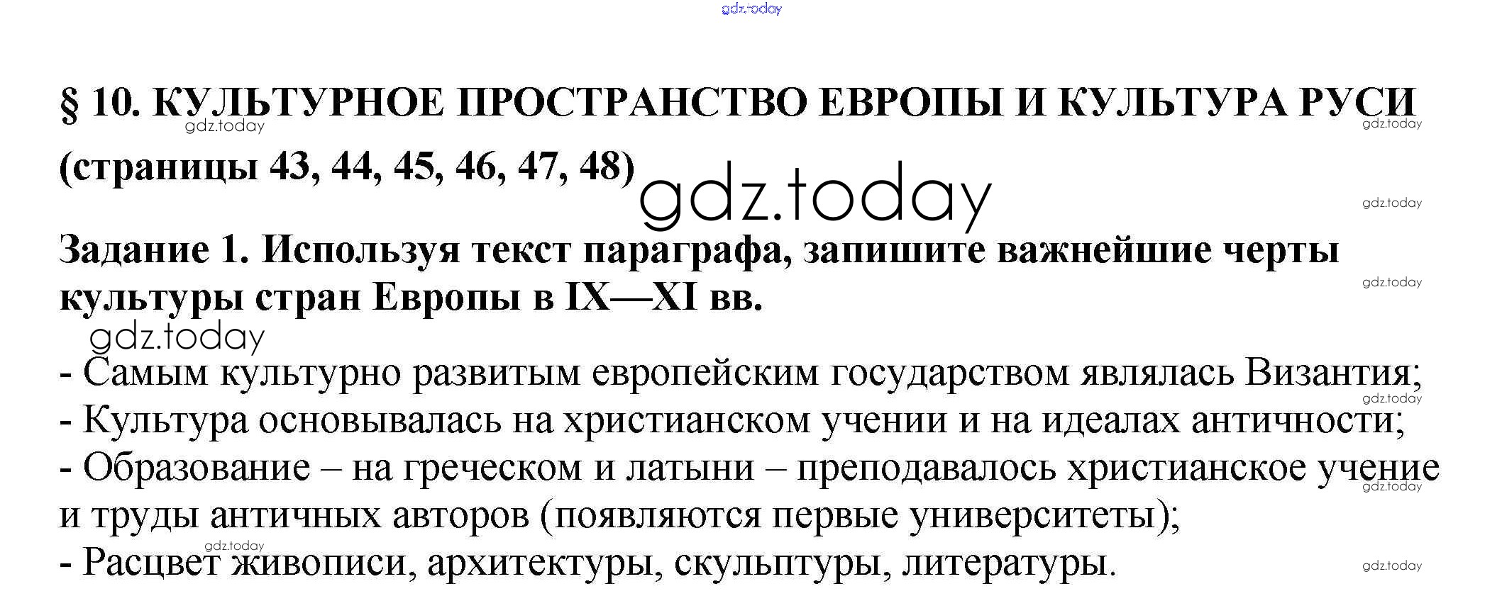 На страницах сайта gdz.today вы найдете учебный и вспомогательный материал, направленный на улучшения знаний школьной программы. ГДЗ - онлайн мир знаний Решение к §10 стр. 43 Рабочей тетради по Истории России для 6 класса Артасов, Данилов Просвещение 2016