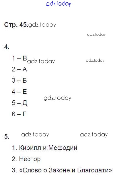 На страницах сайта gdz.today вы найдете учебный и вспомогательный материал, направленный на улучшения знаний школьной программы. ГДЗ - онлайн мир знаний Решение к §10 стр. 45 Рабочей тетради по Истории России для 6 класса Артасов, Данилов Просвещение 2016