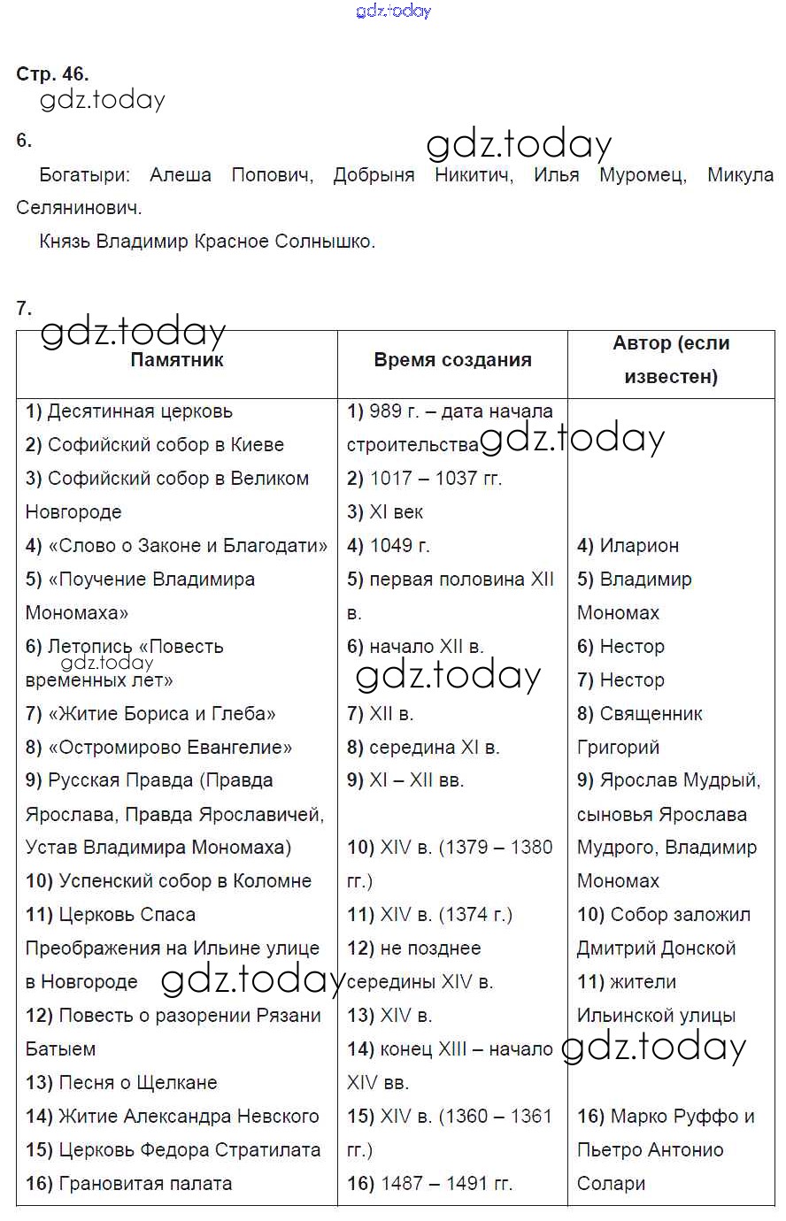 На страницах сайта gdz.today вы найдете учебный и вспомогательный материал, направленный на улучшения знаний школьной программы. ГДЗ - онлайн мир знаний Решение к §10 стр. 46 Рабочей тетради по Истории России для 6 класса Артасов, Данилов Просвещение 2016