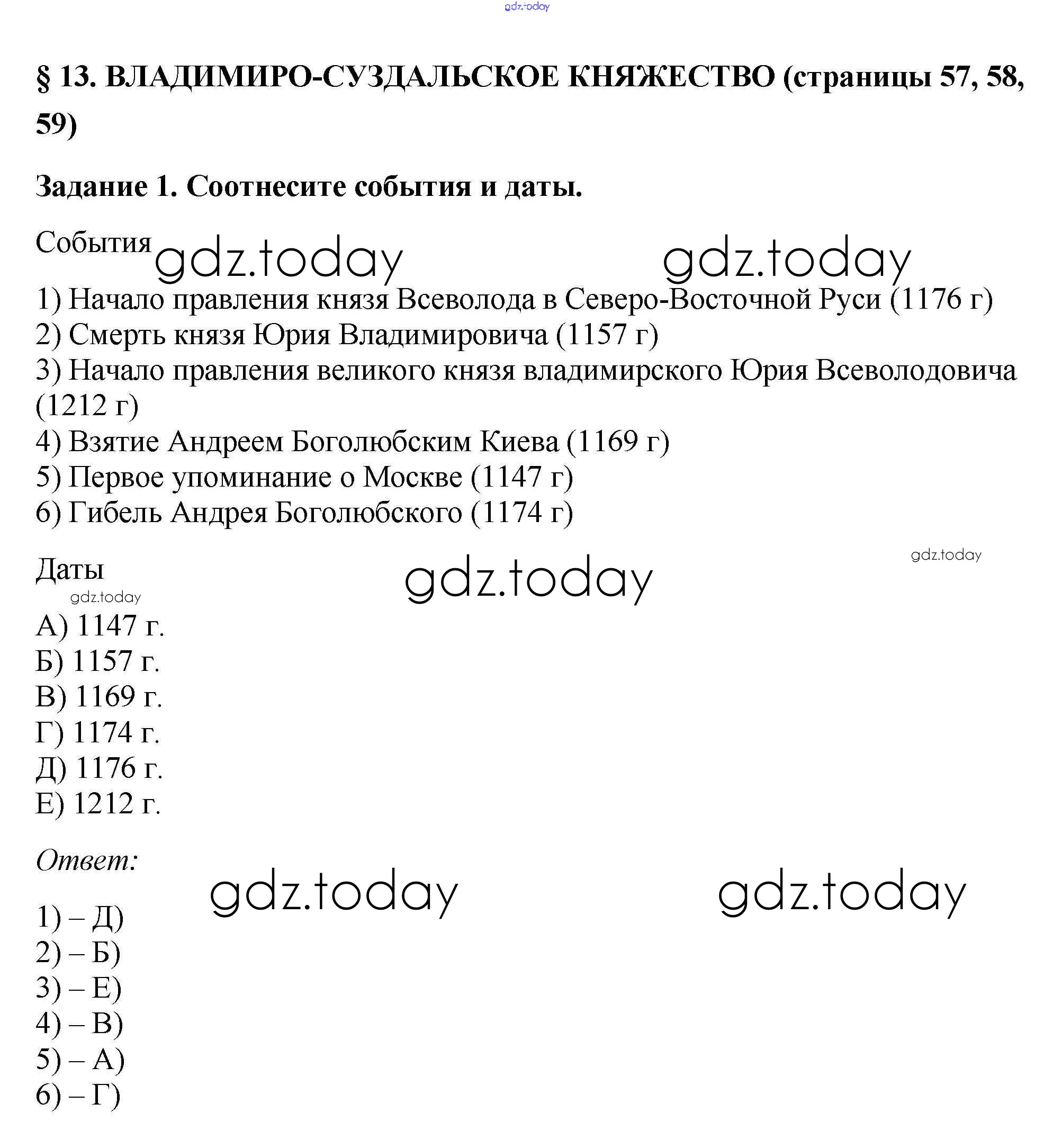 На страницах сайта gdz.today вы найдете учебный и вспомогательный материал, направленный на улучшения знаний школьной программы. ГДЗ - онлайн мир знаний Решение к §13 стр. 57 Рабочей тетради по Истории России для 6 класса Артасов, Данилов Просвещение 2016