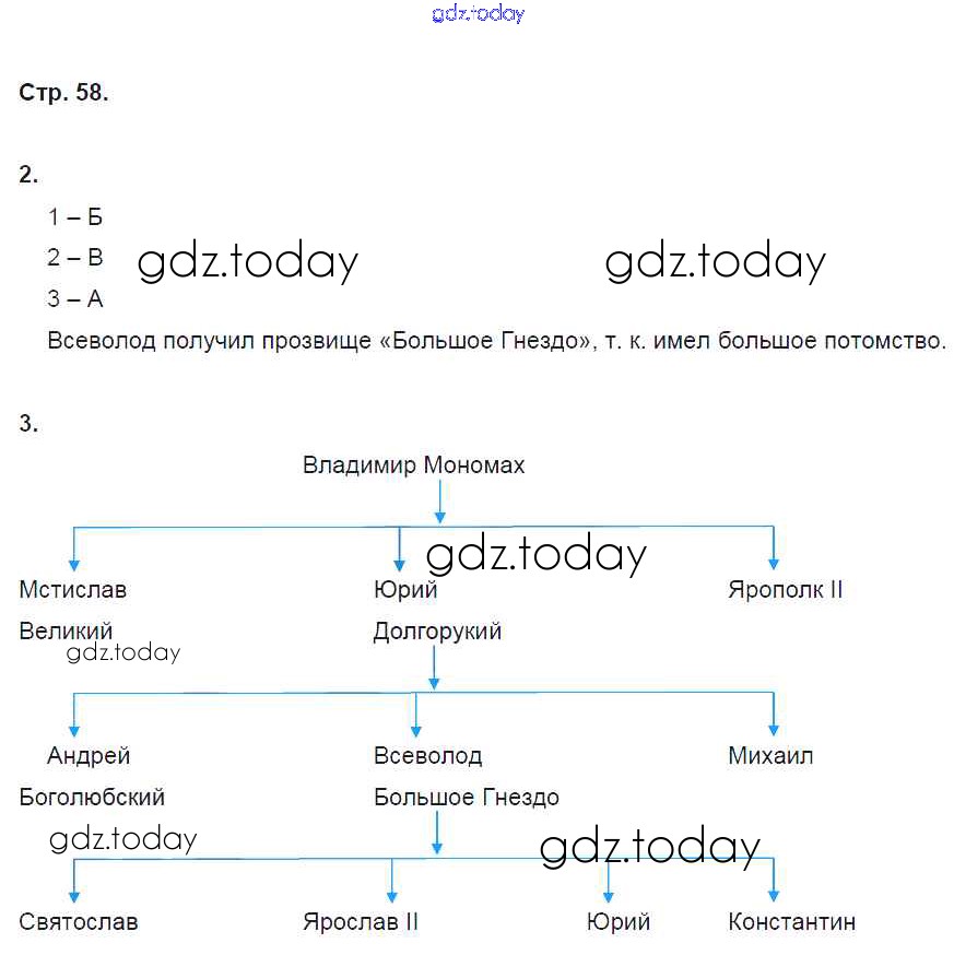 На страницах сайта gdz.today вы найдете учебный и вспомогательный материал, направленный на улучшения знаний школьной программы. ГДЗ - онлайн мир знаний Решение к §13 стр. 58 Рабочей тетради по Истории России для 6 класса Артасов, Данилов Просвещение 2016