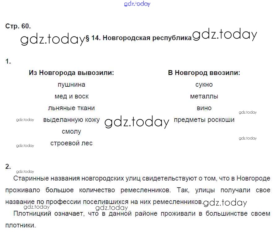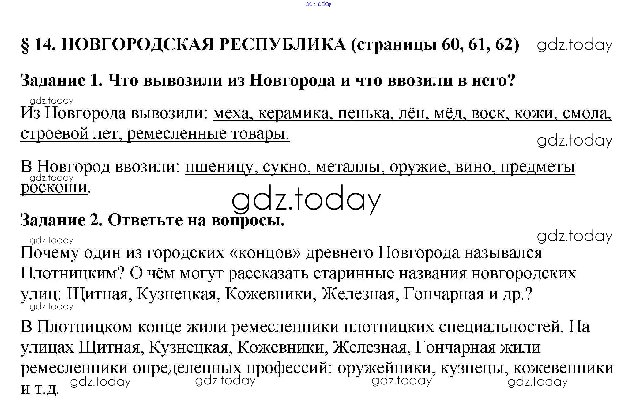 На страницах сайта gdz.today вы найдете учебный и вспомогательный материал, направленный на улучшения знаний школьной программы. ГДЗ - онлайн мир знаний Решение к §14 стр. 60 Рабочей тетради по Истории России для 6 класса Артасов, Данилов Просвещение 2016