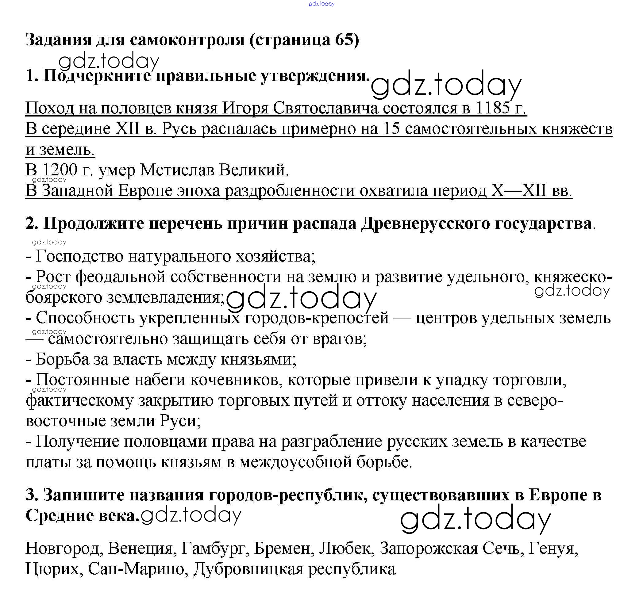На страницах сайта gdz.today вы найдете учебный и вспомогательный материал, направленный на улучшения знаний школьной программы. ГДЗ - онлайн мир знаний Решение к §14 стр. 65 Рабочей тетради по Истории России для 6 класса Артасов, Данилов Просвещение 2016