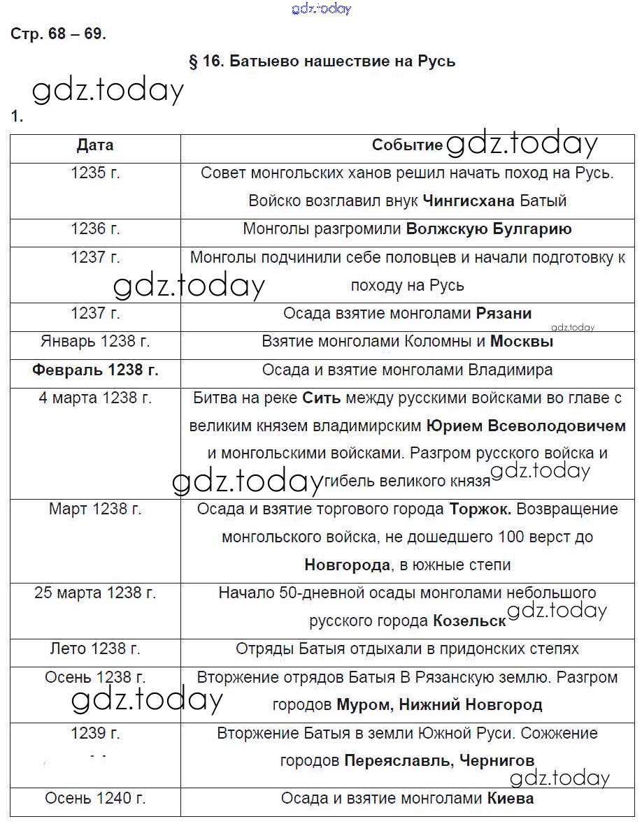 На страницах сайта gdz.today вы найдете учебный и вспомогательный материал, направленный на улучшения знаний школьной программы. ГДЗ - онлайн мир знаний Решение к §16 стр. 69 Рабочей тетради по Истории России для 6 класса Артасов, Данилов Просвещение 2016
