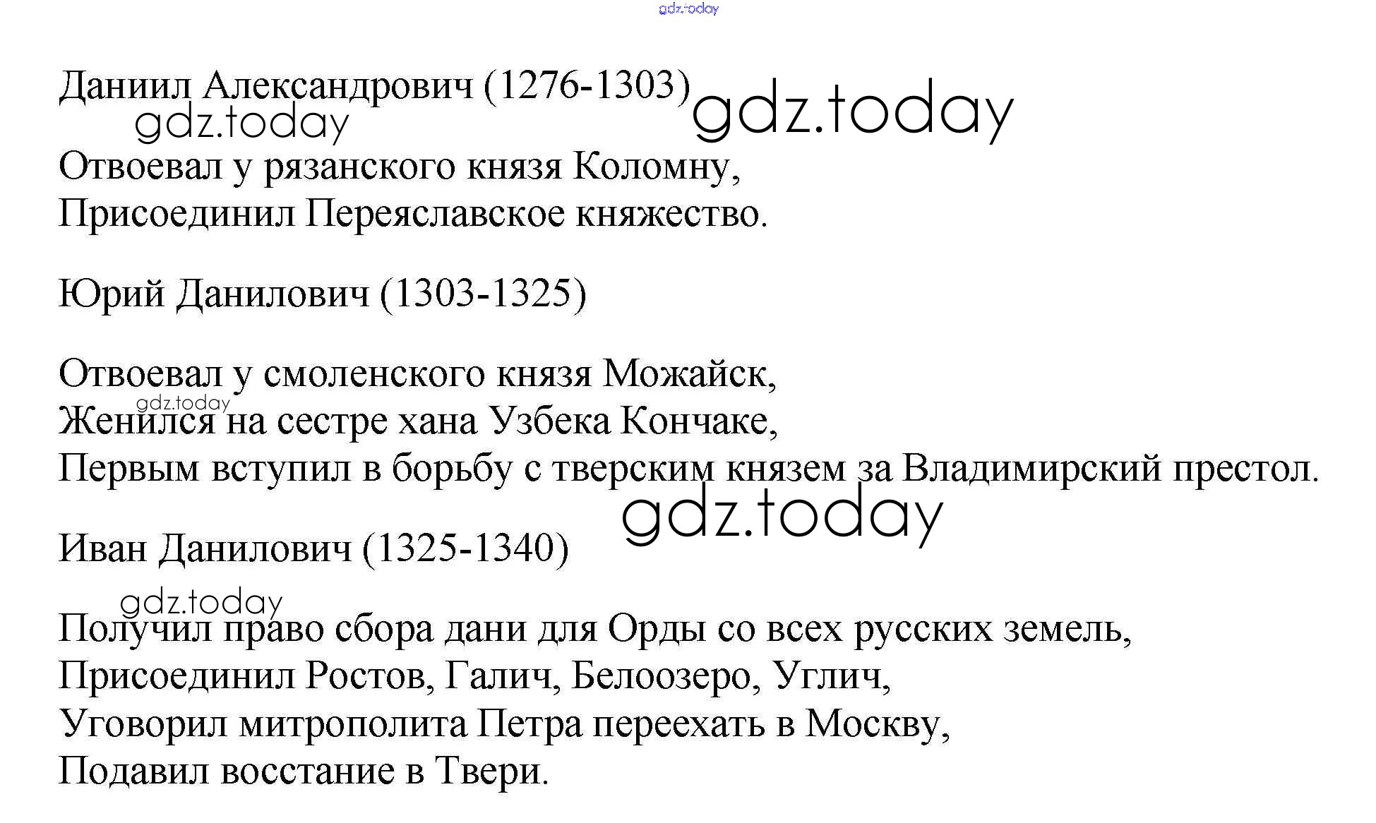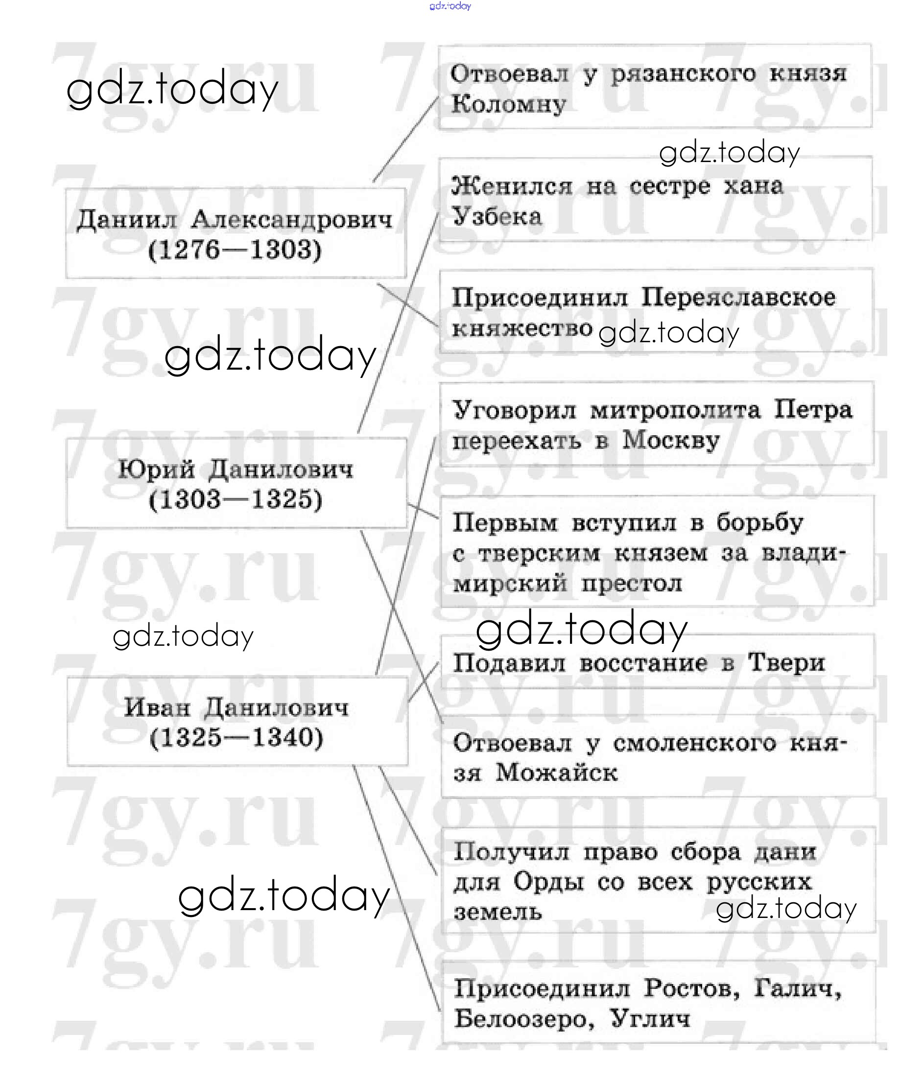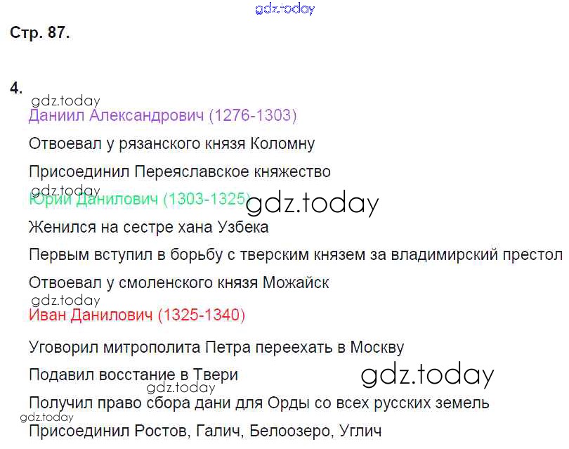 На страницах сайта gdz.today вы найдете учебный и вспомогательный материал, направленный на улучшения знаний школьной программы. ГДЗ - онлайн мир знаний Решение к §20 стр. 87 Рабочей тетради по Истории России для 6 класса Артасов, Данилов Просвещение 2016