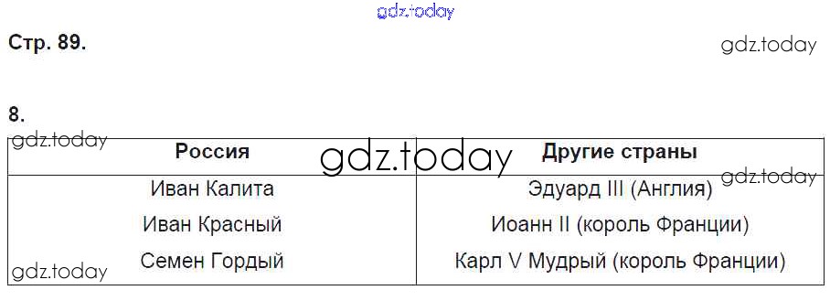 На страницах сайта gdz.today вы найдете учебный и вспомогательный материал, направленный на улучшения знаний школьной программы. ГДЗ - онлайн мир знаний Решение к §20 стр. 89 Рабочей тетради по Истории России для 6 класса Артасов, Данилов Просвещение 2016